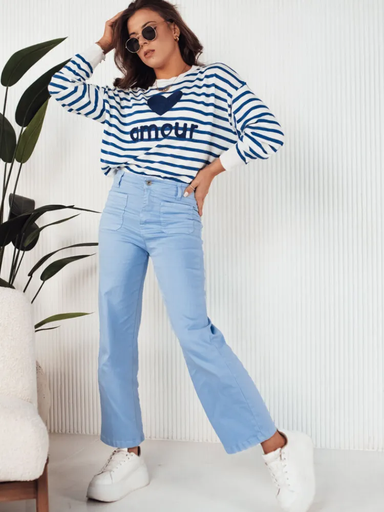 Spodnie dzwony z powrotem na modowym piedestale! Te spodnie to idealne połączenie retro stylu z nowoczesnymi trendami. Naszyte kieszenie dodają im funkcjonalności oraz wyjątkowego wyglądu. Idealne dla kobiet, które cenią sobie oryginalność i chcą wyróżnić się z tłumu.