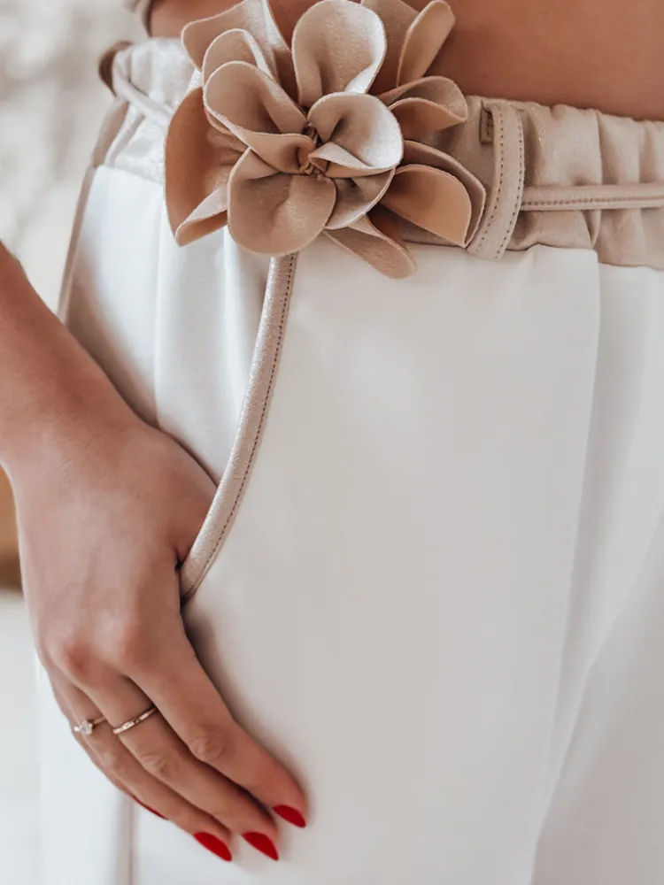 Spodnie damskie masełko casualowe z kwiatami LEGISSA