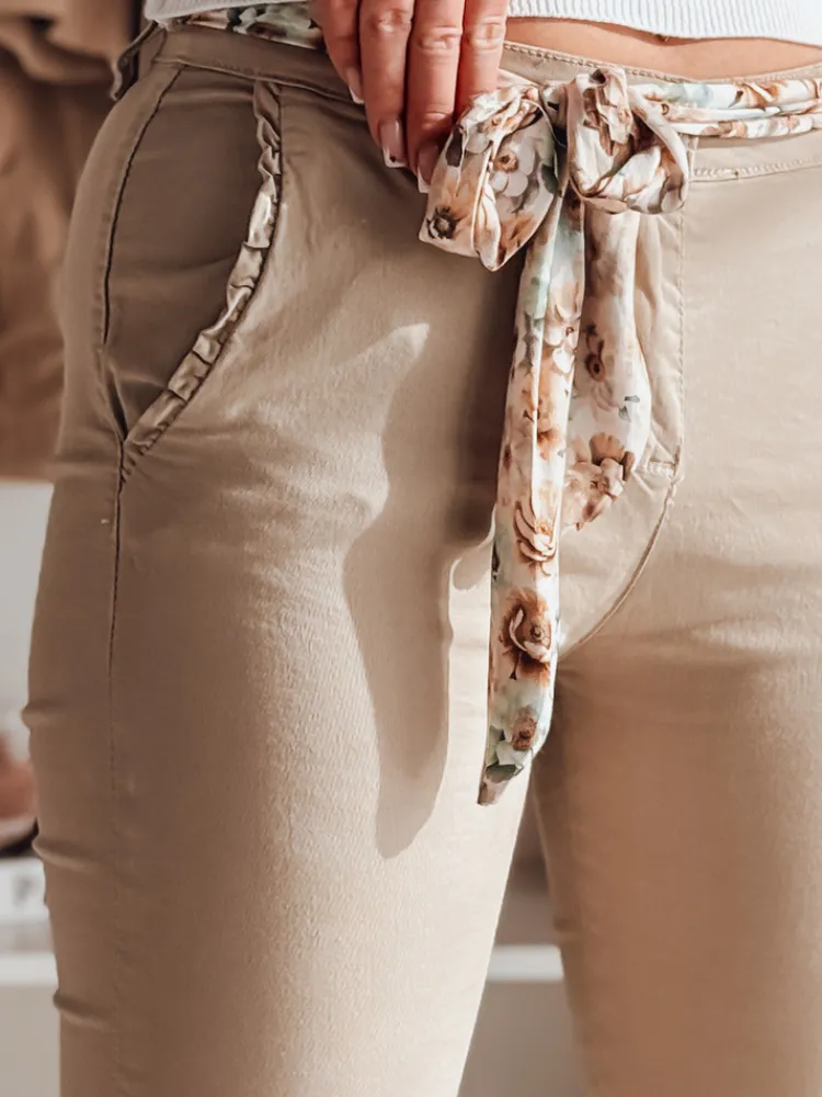 Spodnie damskie materiałowe chinosy z paskiem ROSSALI