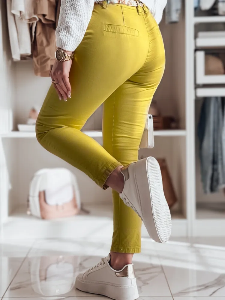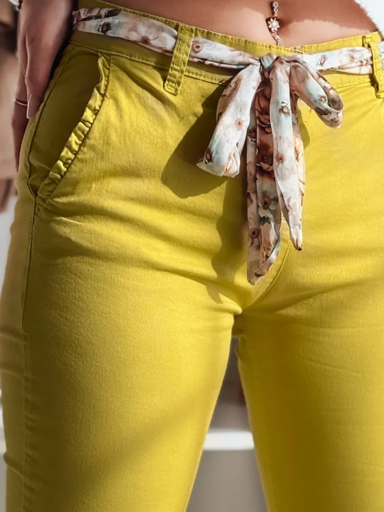 Spodnie damskie materiałowe chinosy z paskiem ROSSALI