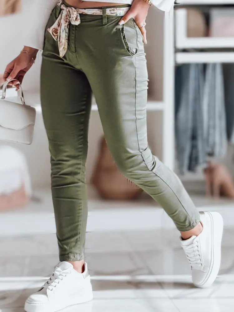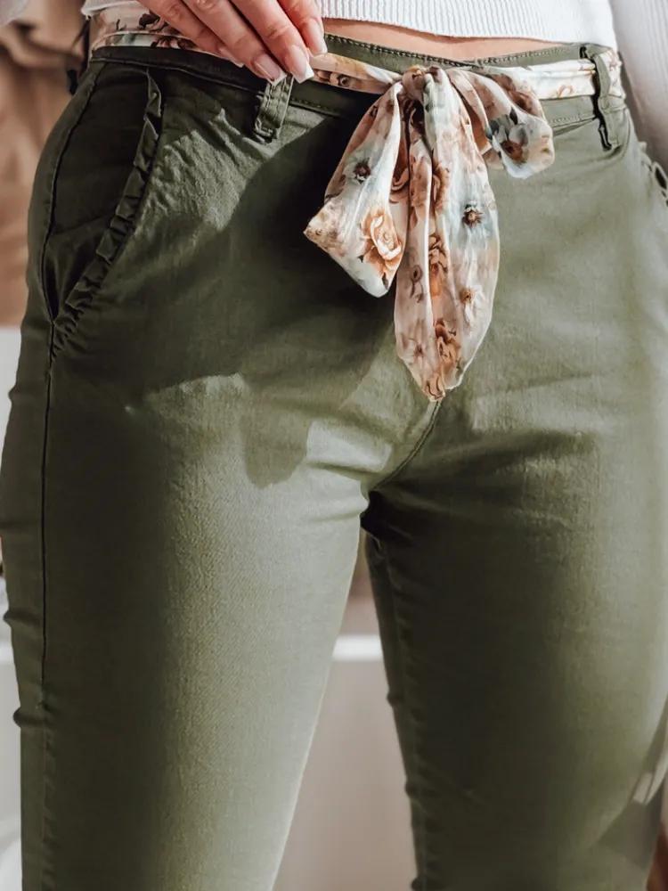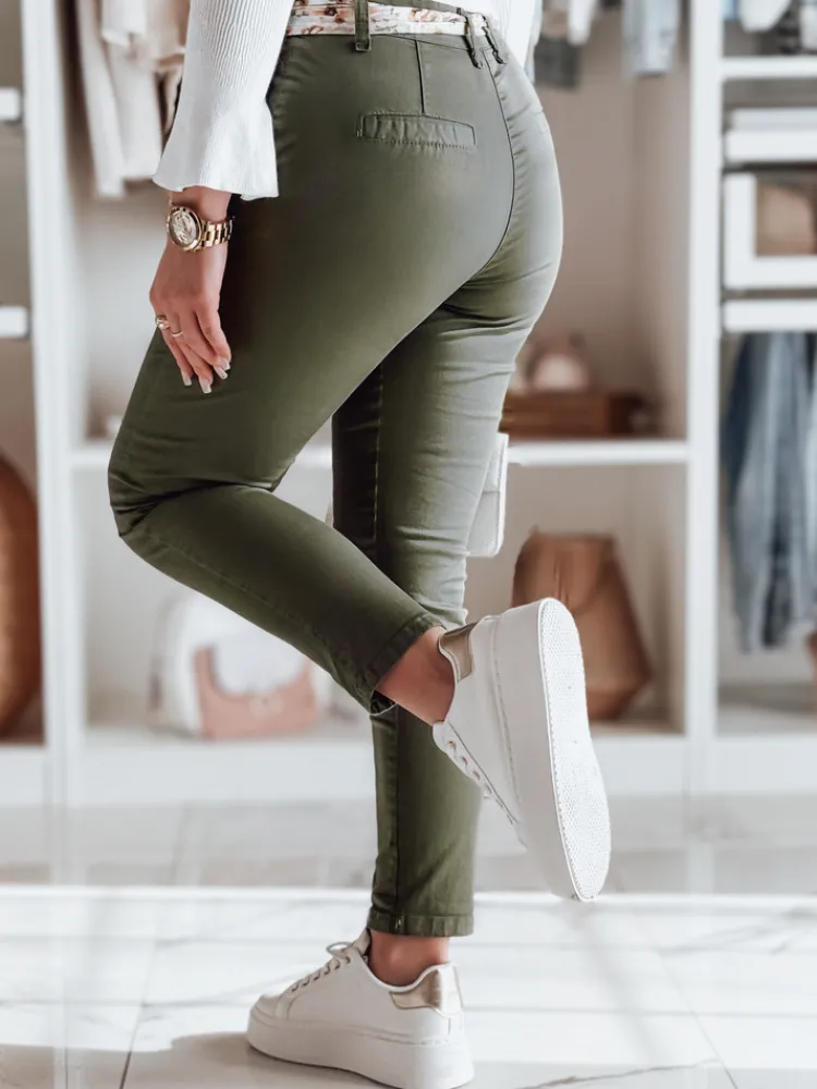 Spodnie damskie materiałowe chinosy z paskiem ROSSALI