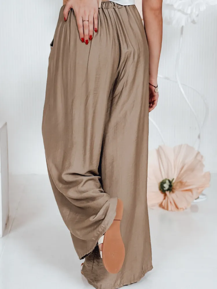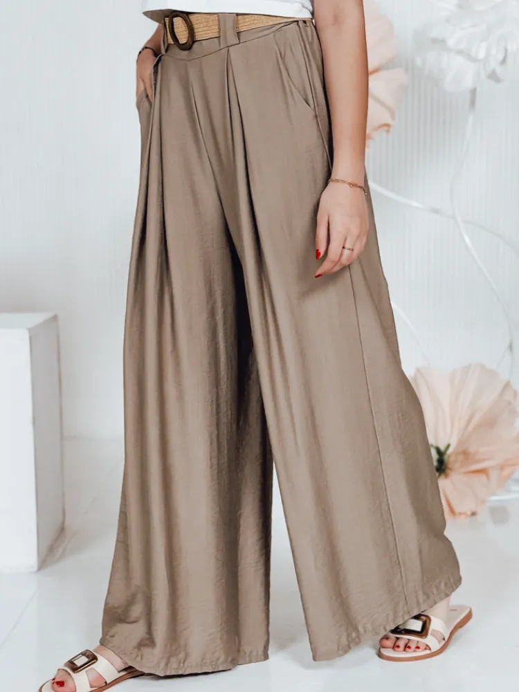Szerokie spodnie damskie z wiskozy to synonim swobody i szyku. Miękki, przewiewny materiał pięknie układa się przy każdym ruchu, a elegancki pas z ozdobną klamrą dodaje stylowego wykończenia. Idealne na wiosnę – do pracy, na wyjście czy codzienne spacery.