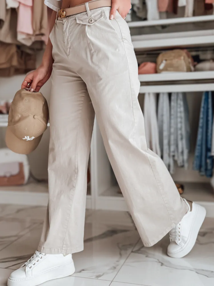 Spodnie wide leg z wysokim stanem to must-have w każdej garderobie. Dopasowana talia podkreśla sylwetkę, a rozszerzane nogawki optycznie wydłużają nogi. Zapinane na zamek i guzik, posiadają ozdobne kieszenie i urocze detale, które dodają im unikalnego charakteru. Bawełniane, lekkie spodnie to doskonała baza do codziennych stylizacji. Świetnie komponują się z casualowymi T-shirtami lub w mniej formalnych zestawach.