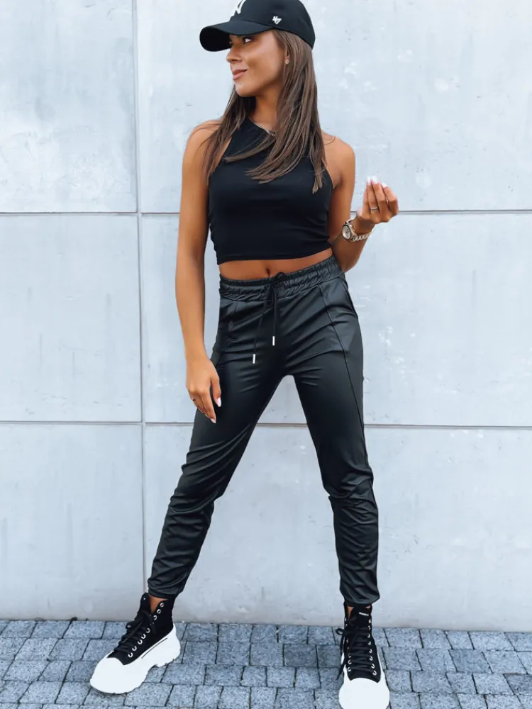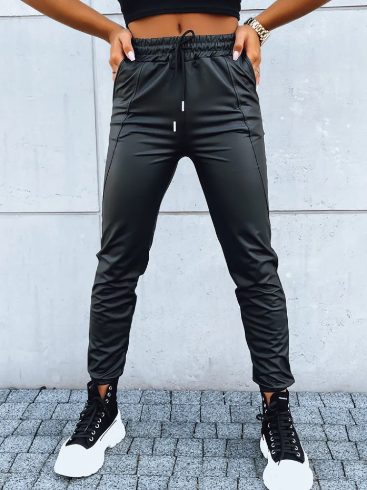 Woskowane joggery to zdecydowany HIT sezonu jesiennego. W pasie posiadają zarówno gumkę jak i wiązanie, dzięki czemu możemy je regulować. Nogawki również wykończone są cienką gumeczką. Wykonane z wysokiej jakości materiału, idealnie dopasowują się do sylwetki. Świetnie sprawdzą się w zestawieniach zarówno sportowych jak i bardziej wymagających.