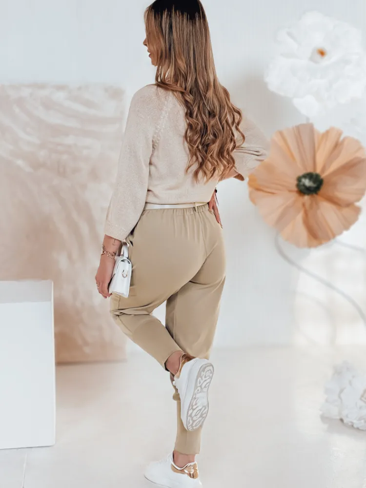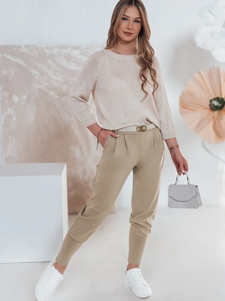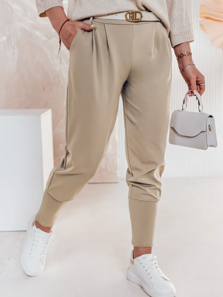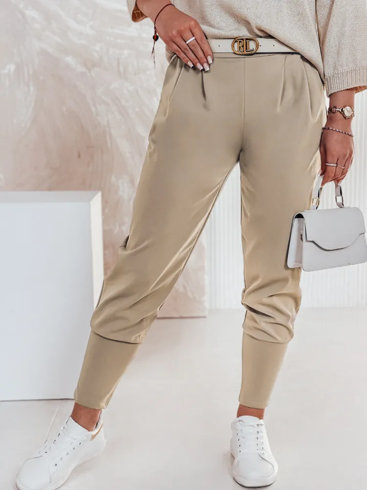 Damskie spodnie materiałowe masełko onesize KLASSIA z paskiem