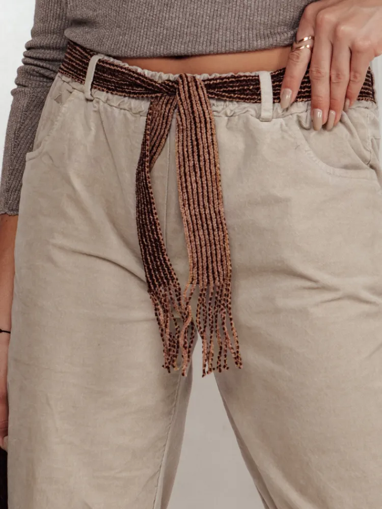 Sztruksowe spodnie z oryginalnym, wiązanym paskiem to propozycja dla miłośniczek stylowego komfortu. Miękka tkanina i swobodny krój sprawiają, że noszenie ich to czysta przyjemność. Idealne do codziennych stylizacji, stanowią doskonałe uzupełnienie garderoby każdej kobiety, która ceni sobie wygodę połączoną z elegancją.