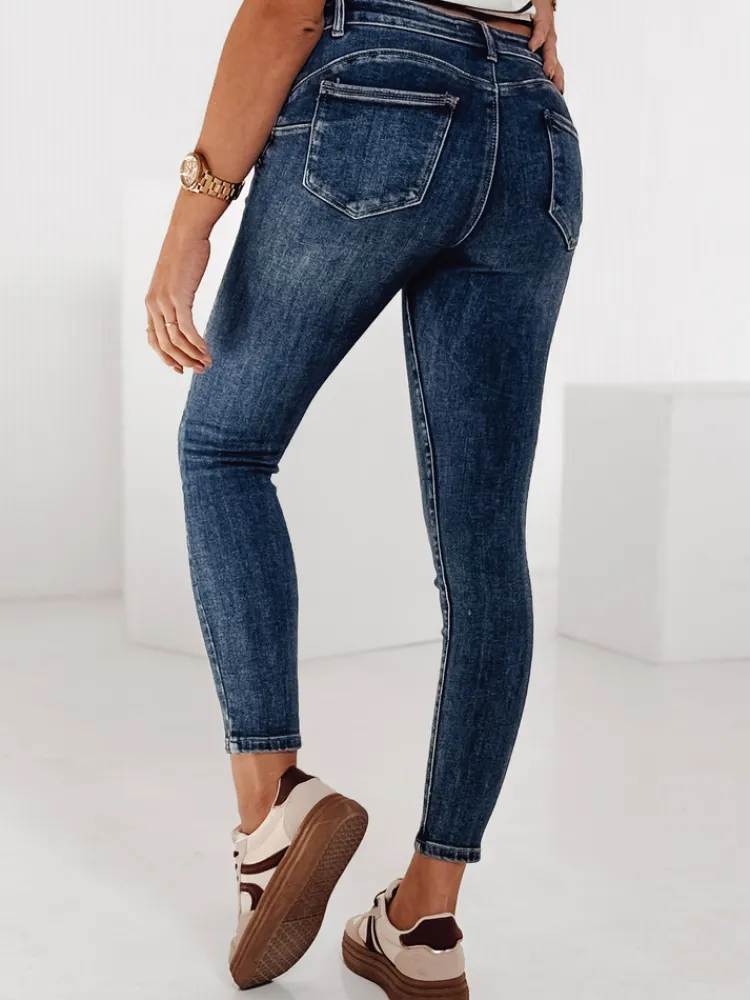 Jeansy, które łączą styl z funkcjonalnością. Dopasowany krój i elastyczny materiał sprawiają, że te spodnie doskonale podkreślają figurę, zapewniając komfort noszenia przez cały dzień. Wysoki stan modeluje sylwetkę, a klasyczny design sprawia, że świetnie pasują do różnych stylizacji. Uniwersalność tych jeansów sprawia, że są idealnym wyborem na każdą okazję.