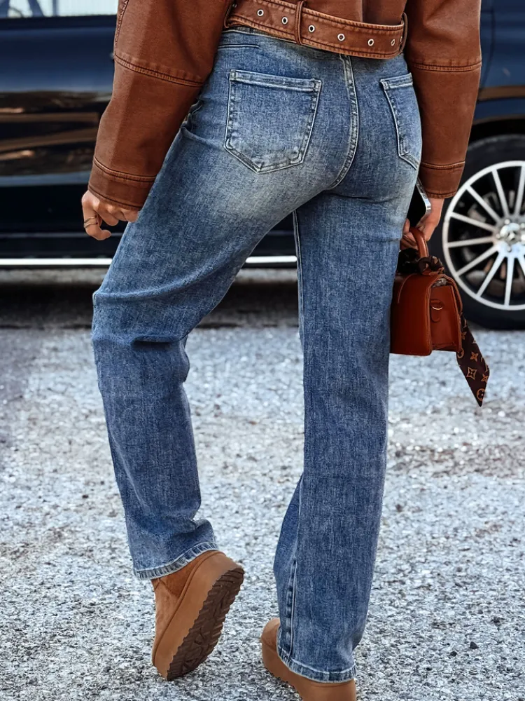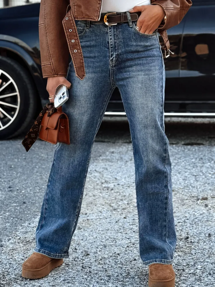 Spodnie damskie jeansowe z paskiem w zestawie ZILVANA