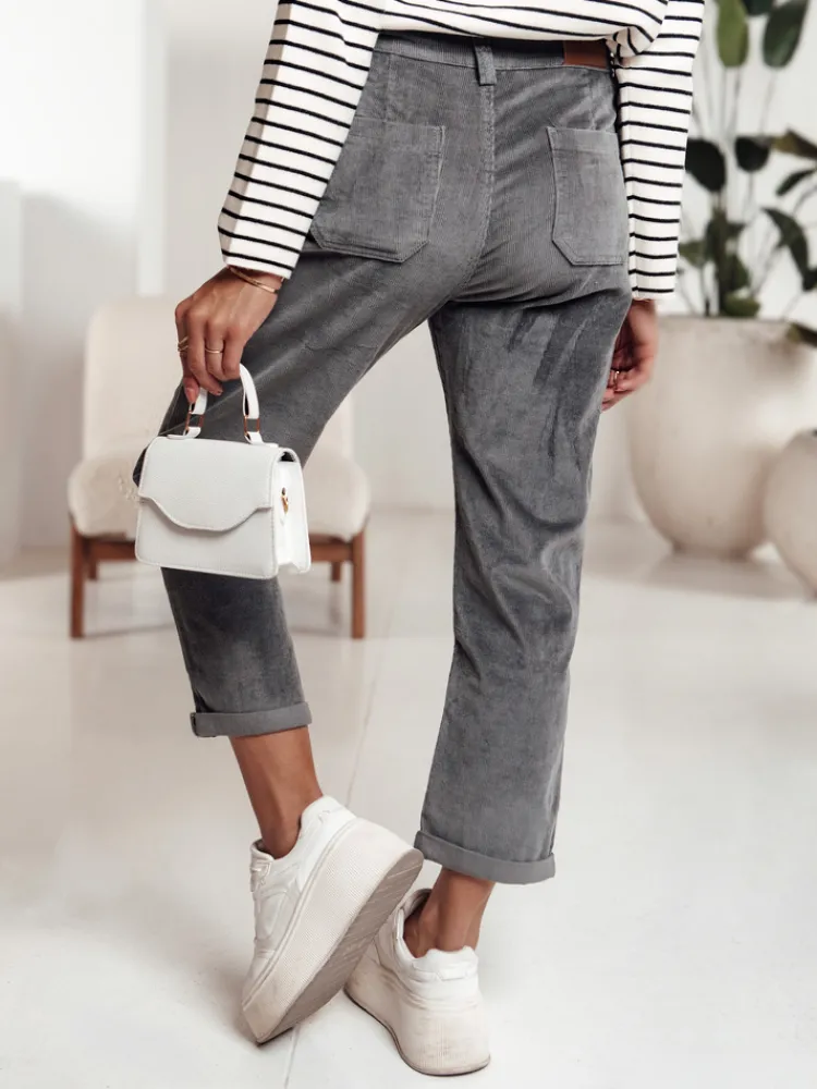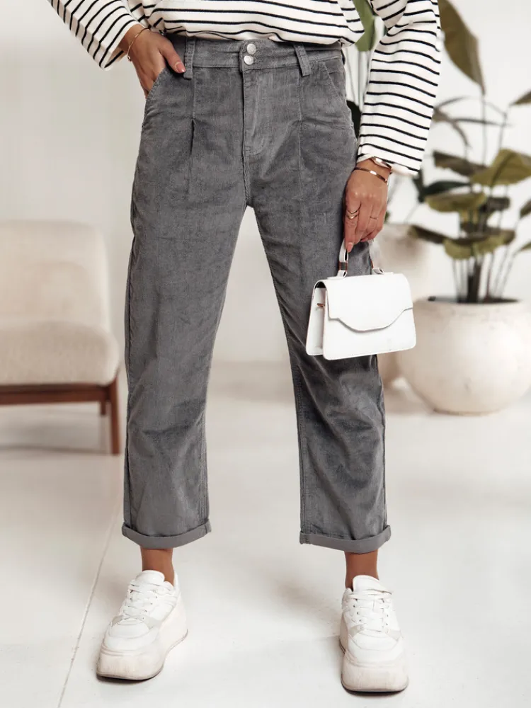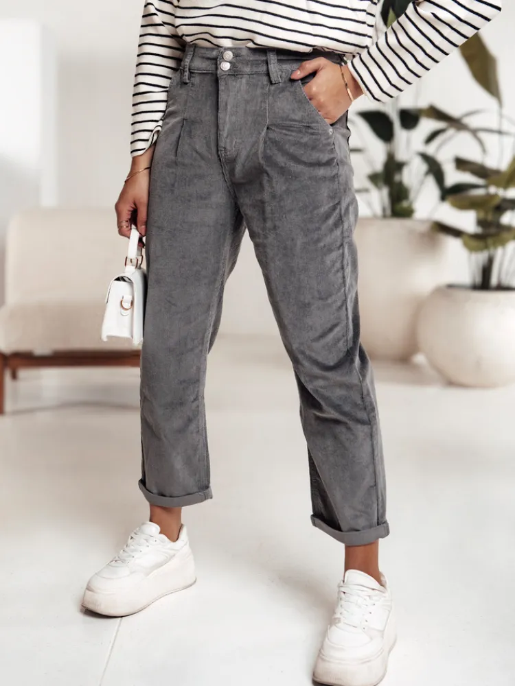 Wygodne spodnie o luźnym kroju, wykonane z miękkiego materiału, idealnie sprawdzą się zarówno na co dzień, jak i podczas bardziej formalnych okazji. Ich casualowy wygląd oraz lekko zwężane nogawki nadają sylwetce smukłości, podkreślając jednocześnie komfort noszenia. Spodnie świetnie komponują się z różnorodnymi stylizacjami, co czyni je uniwersalnym elementem garderoby.