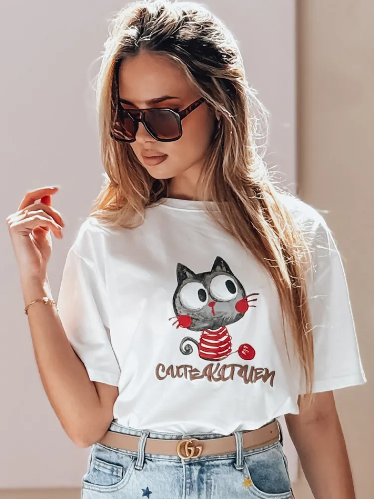 T-shirt damski oversize z kotkiem CUTE KITTEN