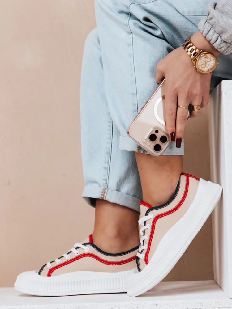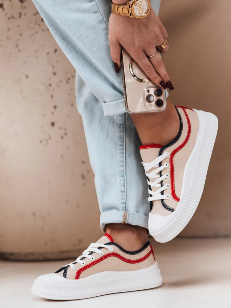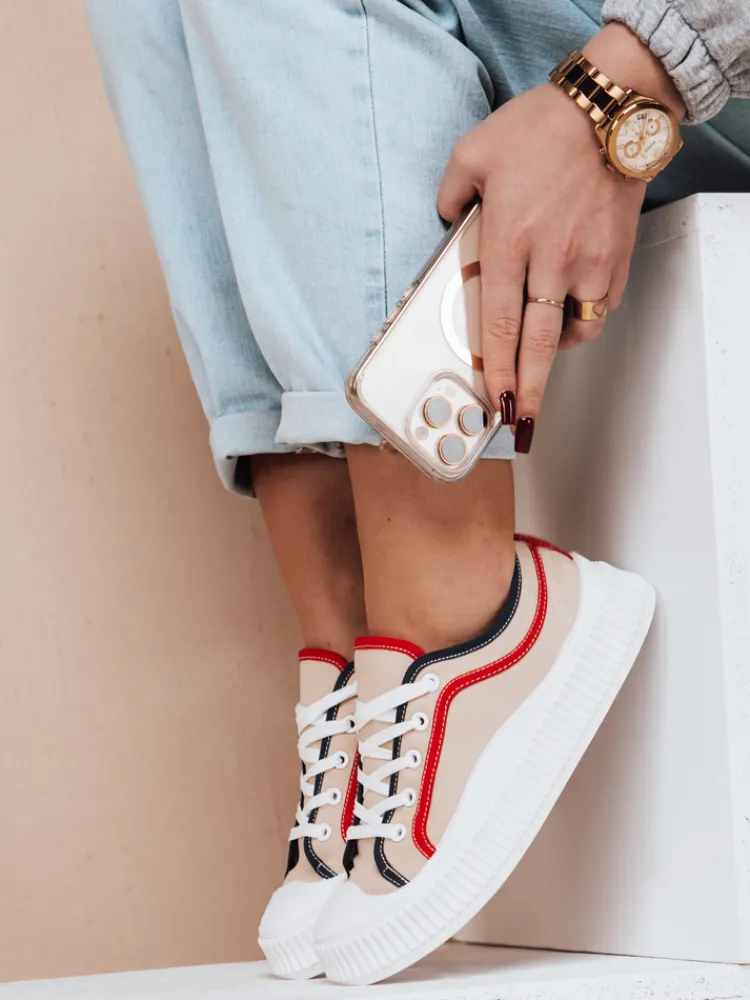 Niepowtarzalne sportowe trampki damskie wykonane z tkaninowego materiału. Cholewka jest sznurowana. Model na wygodnej platformie. Te buty wspaniale zaprezentują się w zestawieniu z jeansami, zwiewnymi sukienkami czy szortami.
