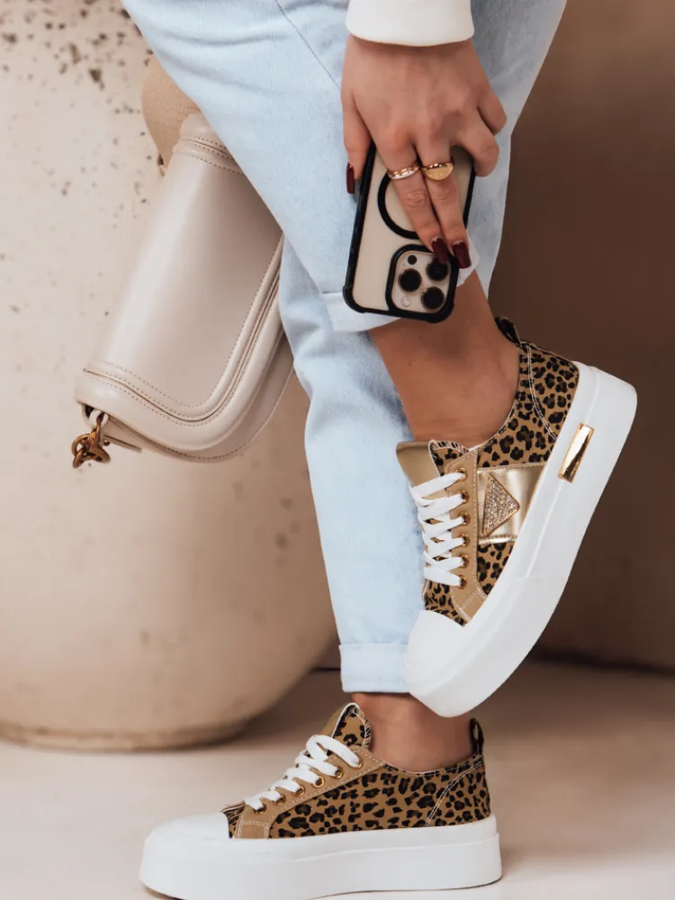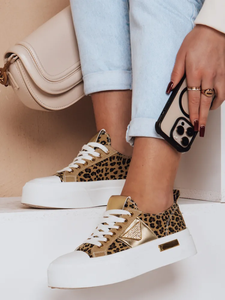 Trampki damskie na wysokiej platformie wykonane z materiału tkaninowego. Cholewka jest sznurowana. Buty posiadają ozdobę w formie diamencików, która dodaje uroku oraz szyku. Pasują zarówno do spodni, jak i sukienek, co czyni je uniwersalnym wyborem na każdą okazję.