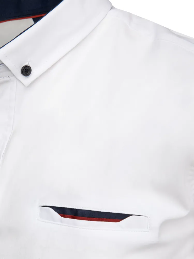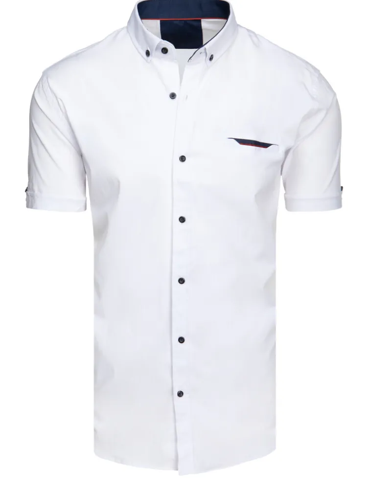 Koszula męska casualowa z krótkim rękawem to połączenie klasyki i nowoczesnych detali. Regularny krój zapewnia elegancki wygląd, a kołnierzyk zapinany na guziki utrzymuje formę nawet po całym dniu noszenia. Z przodu znajduje się ozdobna kieszonka z dekoracyjnym kolorowym akcentem, która subtelnie ożywia całość. To świetny wybór na wiosnę – lekka, stylowa i uniwersalna.
