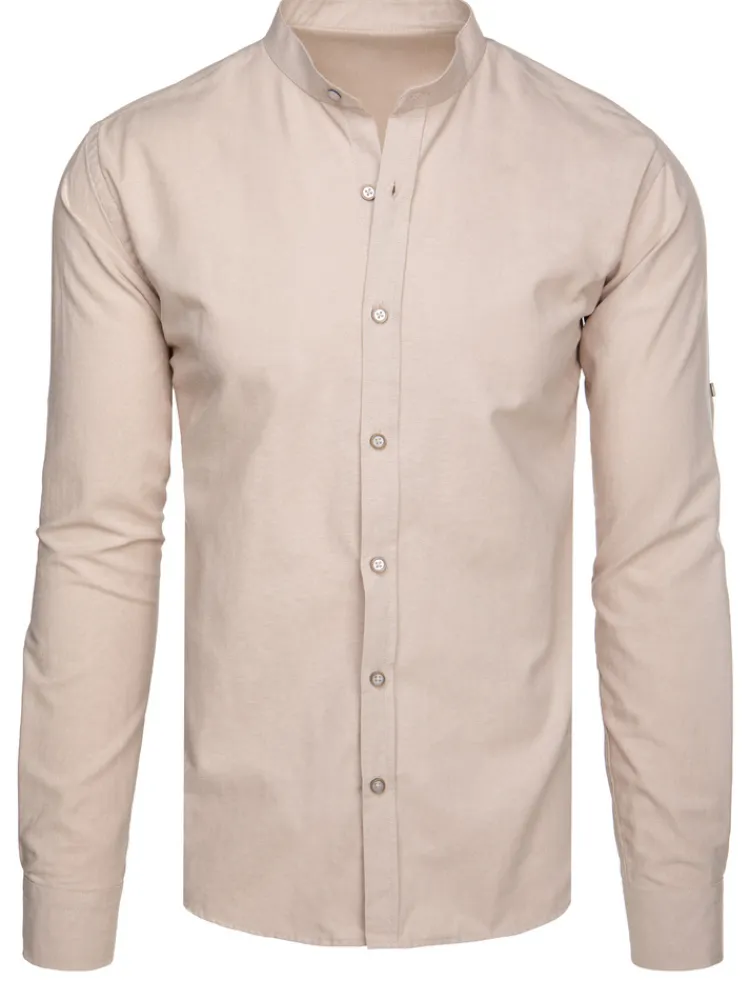 Wyjątkowe Okazje|Koszule Męskie>Dstreet Koszula męska slim ze stójką z długim rękawem beżowa DX2665