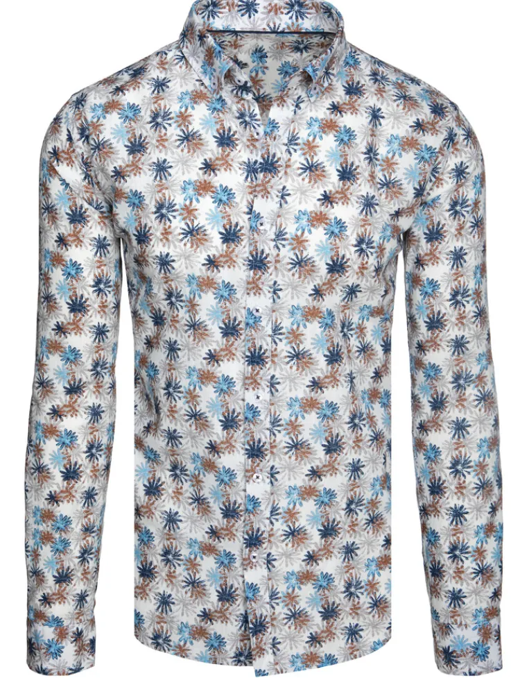 Męska koszula casualowa o efektownym wzorze w kontrastowe kwiaty, idealna na wiosnę i lato. Model slim fit podkreślający sylwetkę, zapinany na klasyczne guziki. Koszula posiada klasyczny kołnierzyk oraz długie rękawy zakończone mankietami z regulowanym zapięciem. Świetny wybór na co dzień i na luźniejsze okazje.