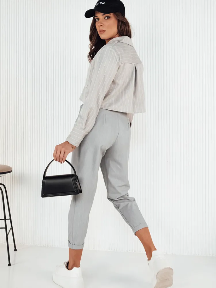 Odkryj idealne połączenie stylu i komfortu z naszymi spodniami o wysokim stanie, zaprojektowanymi z myślą o funkcjonalności i elegancji. Praktyczne dwie kieszenie z przodu umożliwiają przechowywanie drobiazgów, a nogawki o długości do łydki nadają współczesny i modny wygląd. Idealne dla tych, którzy cenią sobie miejski szyk z nutą nonszalancji.