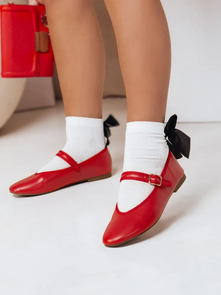 Eleganckie damskie baleriny zapinane, wykonane ze skóry ekologicznej. Model posiada wkładkę zrobioną również z eko skóry. Buty posiadają subtelny pasek zapinany na sprzączkę. Delikatnie zaokrąglony nosek zapewnia wygodę noszenia. Świetnie komponują się zarówno ze zwiewnymi sukienkami, jak i codziennymi stylizacjami.
