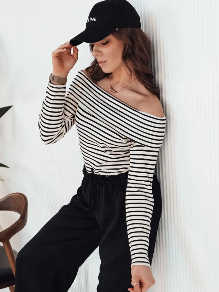 Wyraź siebie z naszą bluzką hiszpanką, która jest kwintesencją ponadczasowej elegancji. Wzór w paski i odkryte ramiona nadają jej współczesnego, ale romantycznego charakteru, który sprawdzi się w każdej sytuacji.