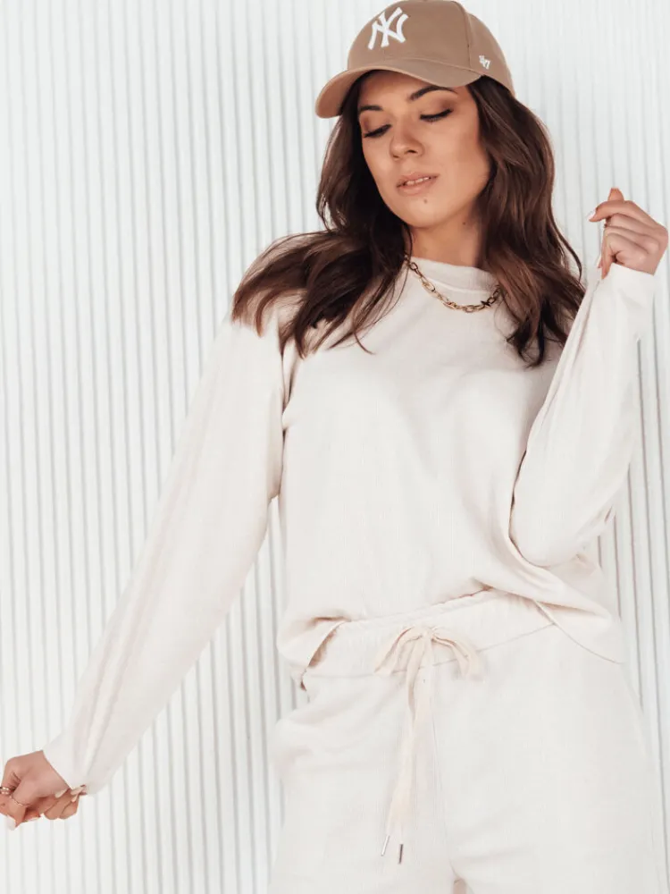 Ta komfortowa bluza jest idealnym dodatkiem do każdej casualowej garderoby, oferując miękkość i elastyczność dzięki prążkowanemu wykończeniu. Jej luźny fason gwarantuje swobodę ruchów i jest świetny do warstwowych zestawień, zarówno w domu, jak i podczas wyjść. Tworzy świetny zestaw ze spodniami LURION.