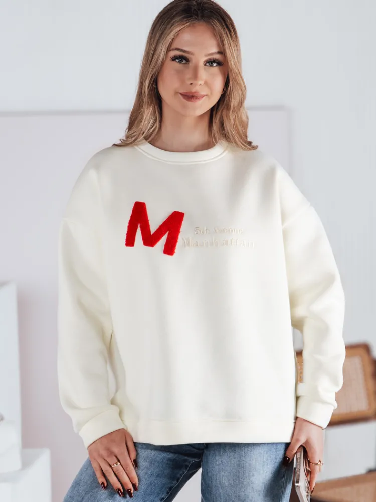 Wygodna bluza o luźnym kroju z minimalistycznym haftem, który dodaje jej miejskiego charakteru. Uniwersalny rozmiar pasuje na rozmairy od XS do L. Rękawy wykończone ściągaczami oraz środek bluzy jest ocieplany. Idealna na co dzień, do pracy czy na spacer.