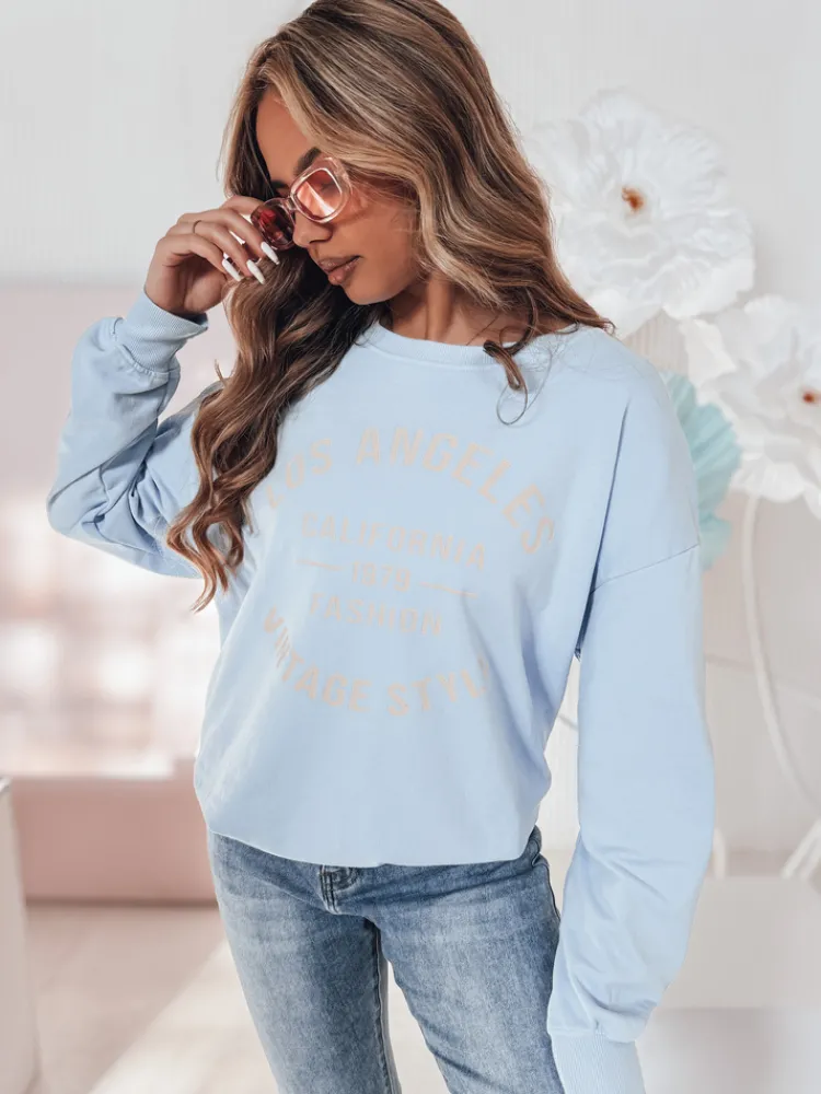 Bluza damska oversize w stylu vintage z modnym nadrukiem inspirowanym klimatem Kalifornii. Luźny krój i przewiewny materiał zapewniają wygodę na co dzień. Uniwersalny rozmiar pasuje od XS do L. Ściągacze przy rękawach i na dole dodają klasycznego wykończenia. Idealna do jeansów oraz sneakersów, tworząc casualowy, ale stylowy look.