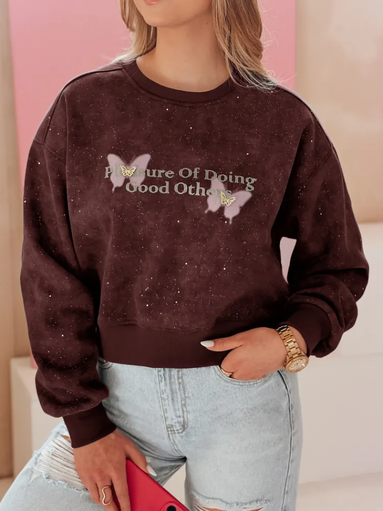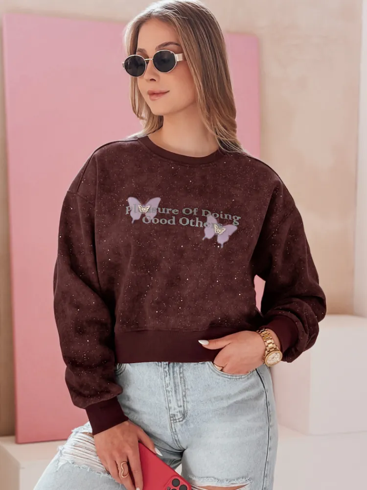 Damska bluza oversize z motywem tie-dye to idealne połączenie wygody i stylu. Ozdobny nadruk z motylkami oraz brokatowe wstawki na całości bluzy nadają jej subtelnego, kobiecego charakteru. Efekt 3D uzyskany dzięki naszywanym motylom sprawia, że bluza prezentuje się niezwykle modnie. Uniwersalny rozmiar pasuje od XS do L. To idealna propozycja dla miłośniczek casualowych stylizacji, doskonale komponuje się z jeansami, jak i legginsami, tworząc stylowy look na co dzień.