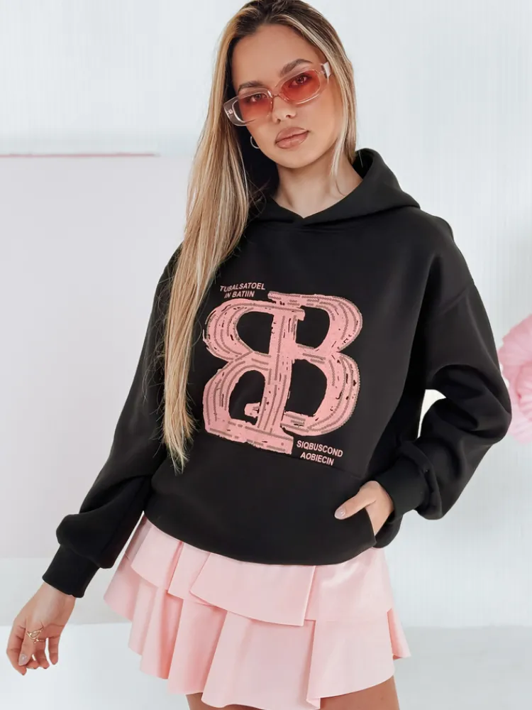 Bluza damska oversize o luźnym kroju, idealna na co dzień. Model z kapturem i ozdobną kieszenią typu kangur, który łączy wygodę z modnym stylem. Ozdobiona wyrazistym nadrukiem z napisami, nadającym jej charakteru. Uniwersalny rozmiar pasuje od XS do L. Ściągacze przy rękawach i na dole dbają o komfort noszenia. Uniwersalny fason sprawdzi się w casualowych stylizacjach, tworząc doskonałą bazę do różnych outfitów.