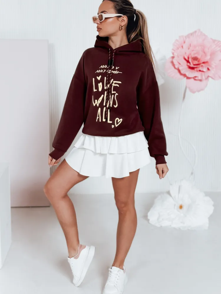 Bluza damska oversize to idealne połączenie wygody i stylu. Luźny fason sprawia, że świetnie układa się na sylwetce, a materiał premium gwarantuje miękkość i komfort noszenia. Model z dużym nadrukiem wpisuje się w trendy streetwearowe, a regulowany kaptur dodaje uroku. Uniwersalny rozmiar pasuje od XS do L. Ściągacze na dole i przy rękawach podkreślają casualowy charakter, czyniąc ją idealnym wyborem do codziennych stylizacji.