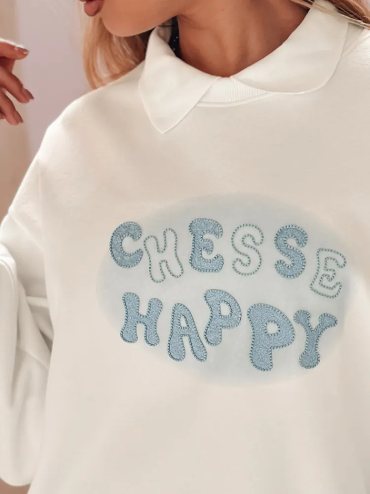 Damska bluza oversize o luźnym fasonie, idealna do wiosennych stylizacji. Wyróżnia się ozdobnym kołnierzykiem, który dodaje jej dziewczęcego uroku oraz nadrukiem z napisem 3D, który przyciąga wzrok i dodaje charakteru. Uniwersalny rozmiar pasuje od XS do L. Model wkładany przez głowę, wykończony ściągaczami przy rękawach i na dole, zapewnia komfort noszenia oraz dobrze dopasowuje się do sylwetki.