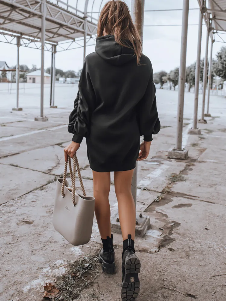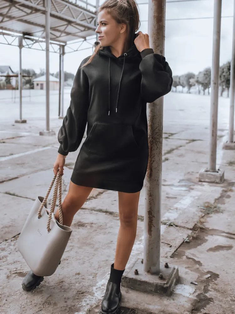 Mega stylowa sukienka EASSY to Must Have w garderobie kobiet ceniących sobie komfort i wygodę. Fason o kroju oversize sprawi, że nie będziesz mogła się z nią rozstać. Model posiada oryginalne rękawy ze ściągaczami oraz kaptur. Na przodzie kieszeń typu kangur. Idealna propozycja do codziennych stylizacji. Noś jako bluzę lub sukienkę! Wybór należy do Ciebie. Polecamy!
