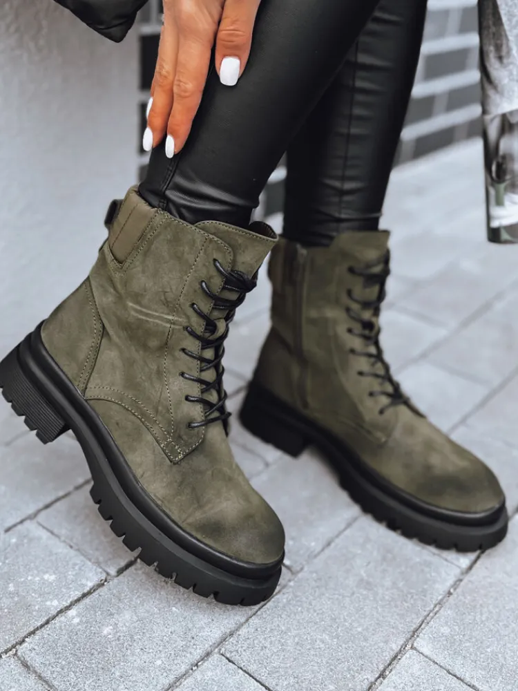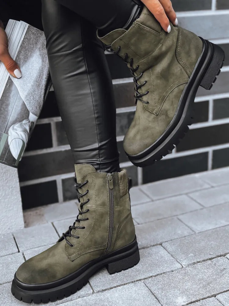 Wykonane z wysokiej jakości imitacji zamszu, sznurowane botki to niezbędnik, jeśli chodzi o tworzenie jesienno-zimowych stylizacji. Umiejscowione zostały na grubej podeszwie. Po zewnętrznej stronie buta znajduje się również zamek. Idealnie zaprezentuje się zarówno ze spodniami, jak i sukienką. Model dostępny w czterech kolorach.