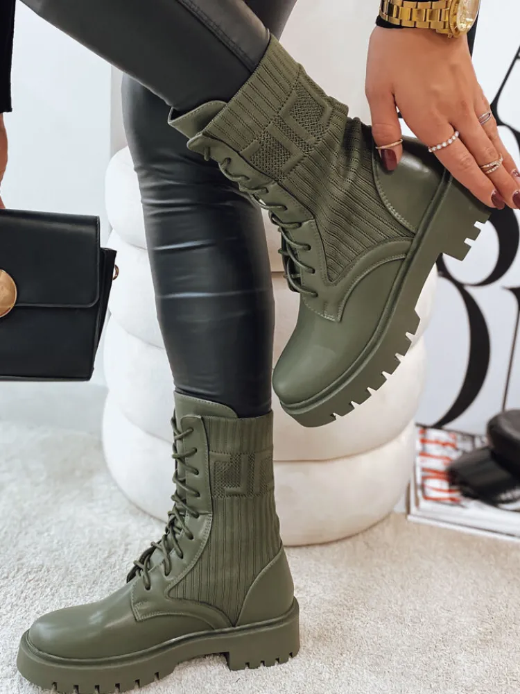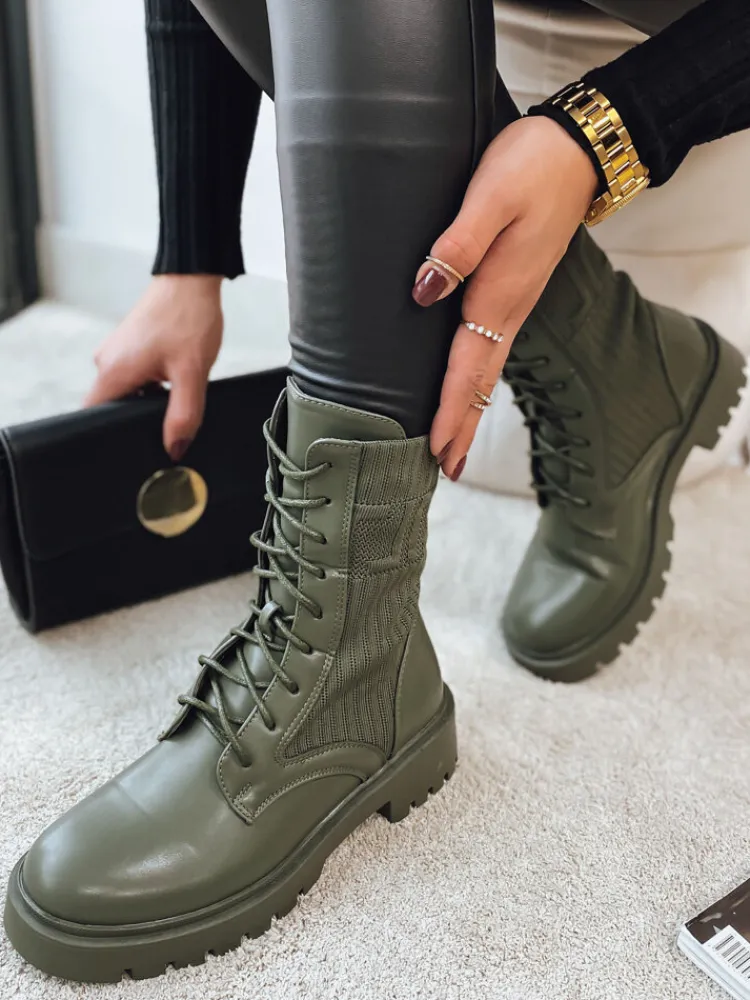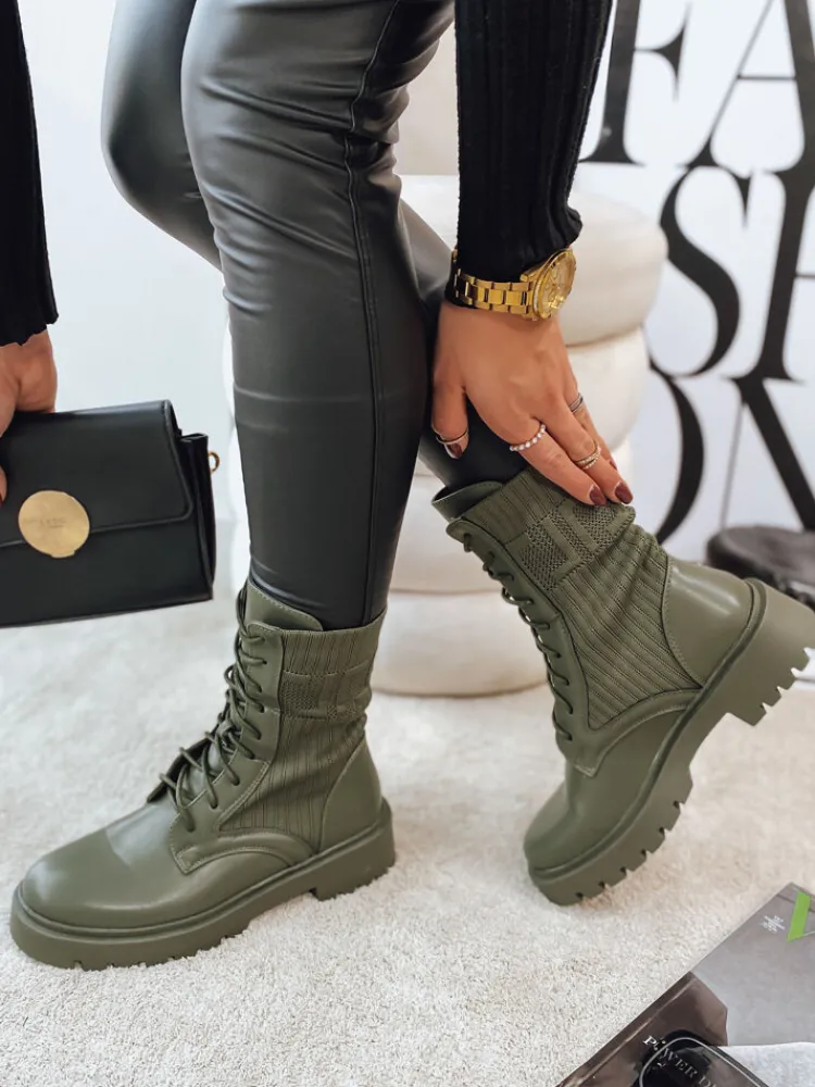 Wiązane botki to zdecydowanie coś bez czego nie wyobrażamy sobie sezonu jesienno-zimowego. Wykonane zostały z połączenia wysokiej jakości imitacji skóry oraz skarpetowej cholewki. Całość dzięki detalom, nada każdej stylizacji niepowtarzalnego charakteru. Standardowa rozmiarówka, sugerujemy wybór rozmiaru jaki nosisz.