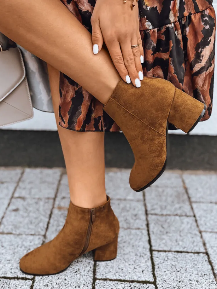 Te stylowe botki z czarnego zamszu to kwintesencja miejskiego szyku. Wyposażone w wygodny, solidny obcas i praktyczne zapięcie na zamek, łączą komfort z elegancją. Ich klasyczny design sprawia, że są one idealnym uzupełnieniem zarówno casualowych, jak i bardziej wyrafinowanych zestawów. Botki te są uniwersalnym wyborem, który doda każdej stylizacji wyjątkowego charakteru.