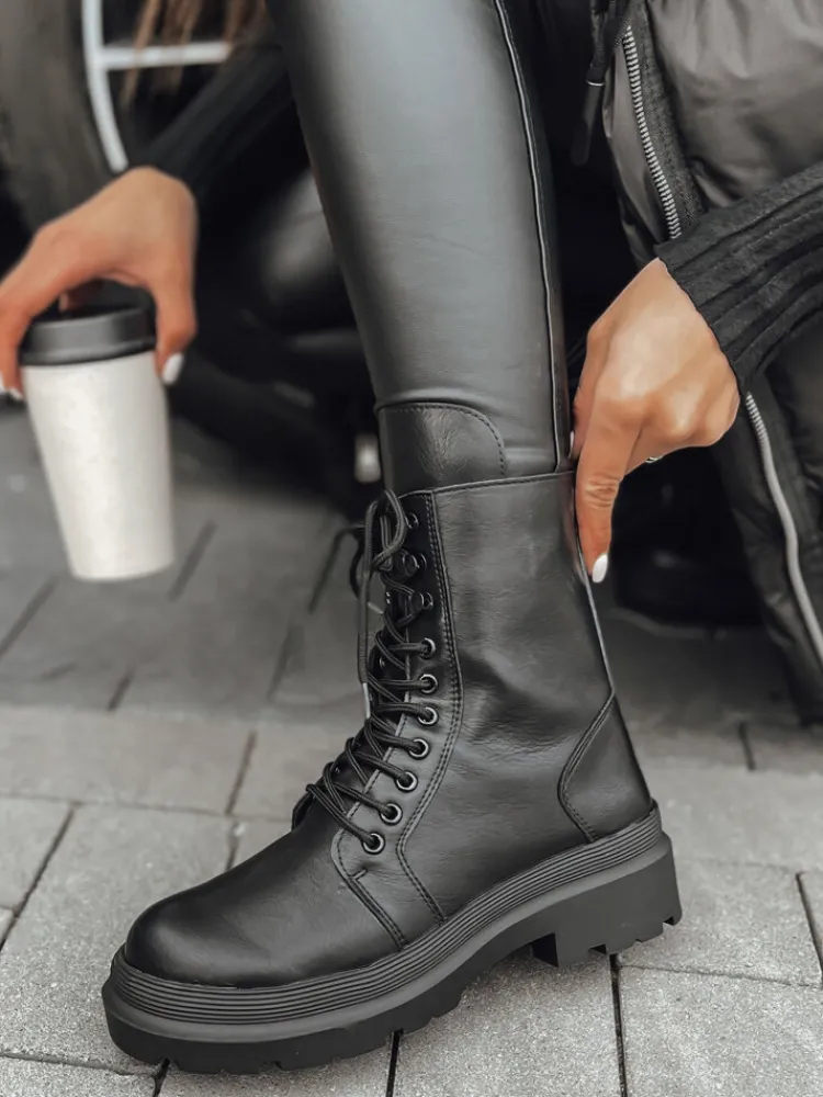 Sznurowane botki z wysokiej jakości imitacji skóry to idealna propozycja na ten sezon! Umiejscowione zostały na grubej podeszwie. Model nie jest ocieplany. Doskonale sprawdzi się do jesienno-zimowych stylizacji.