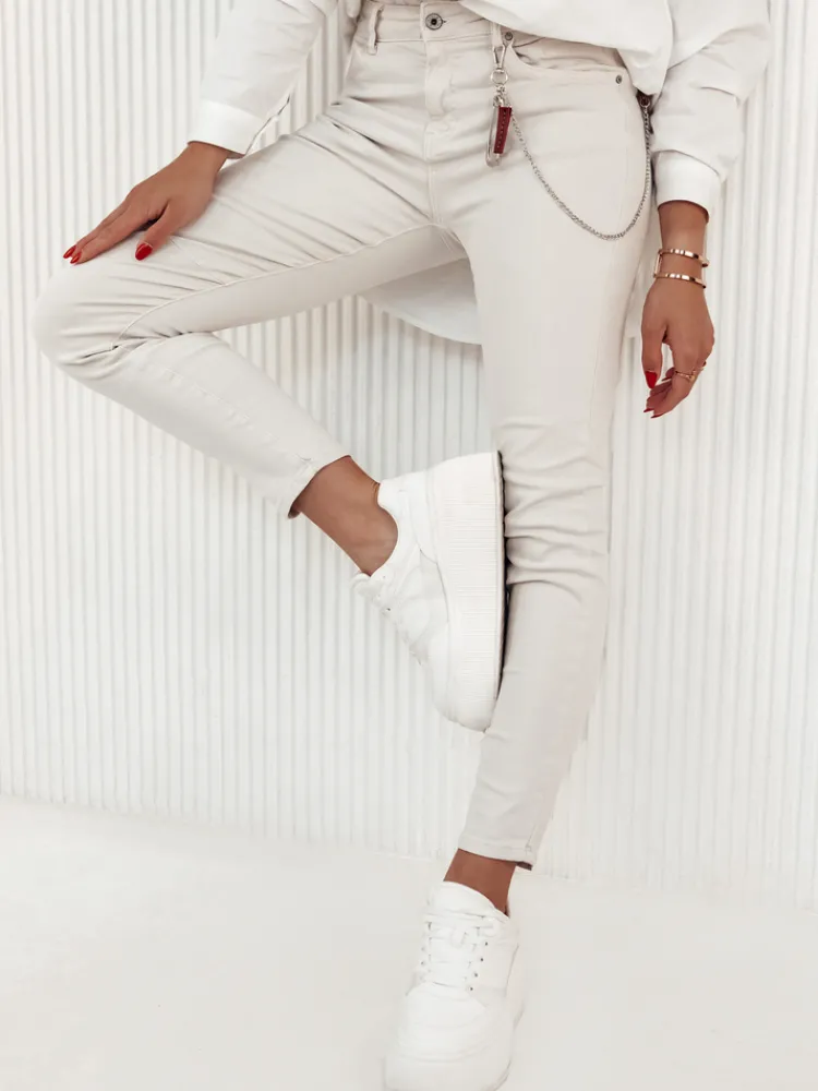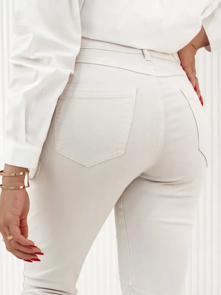 Fason z wysokim stanem to jeden z najbardziej klasycznych modeli, które wprost królują w najnowszym sezonie. Model ten jest stworzony dla wielbicielek innowacyjnych fasonów, który w oczywisty sposób dodaje każdej stylizacji luzu i stylu. Idealne jako element miejskiej stylówki. W zestawie do spodni dokładamy modną aplikację w kolorze srebrnym.