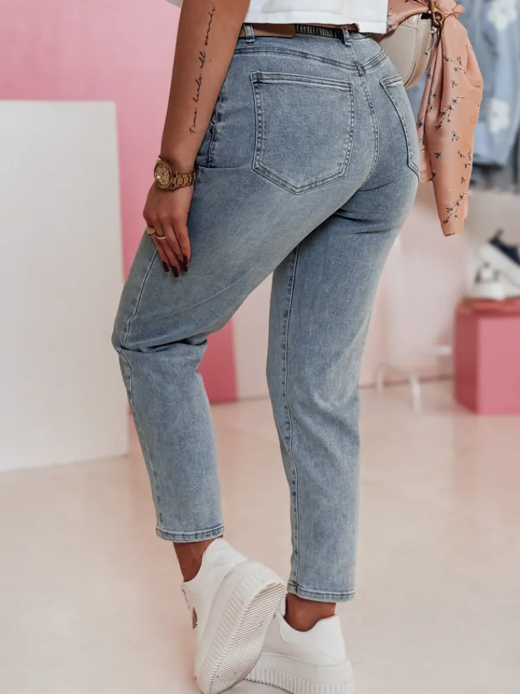Spodnie damskie jeansowe mom fit z wysokim stanem MOMOOD