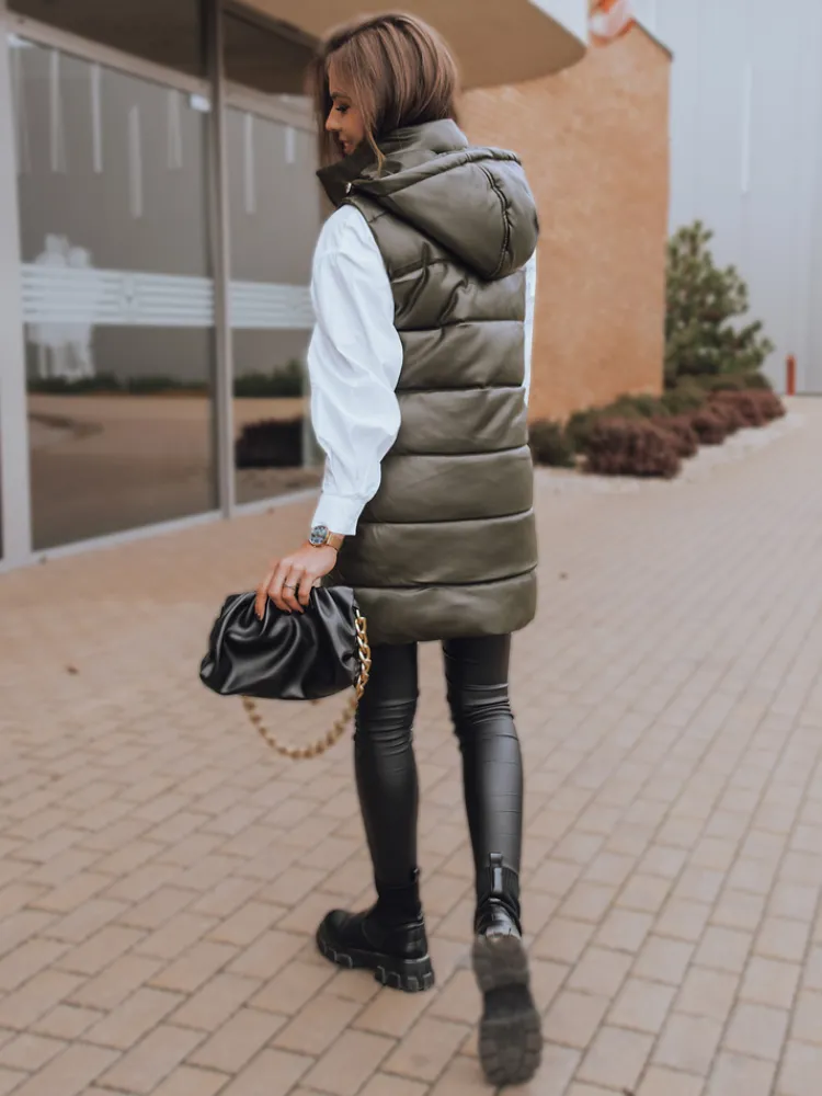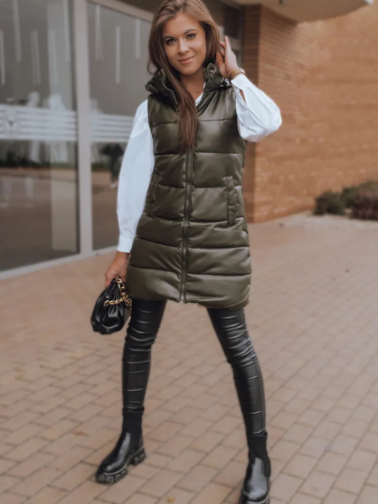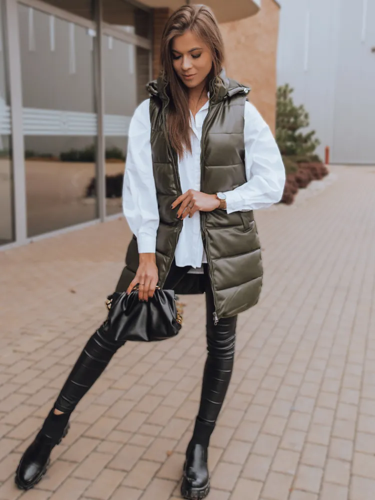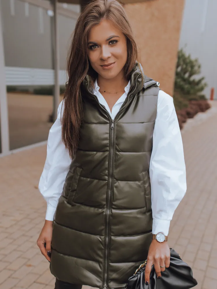 Pikowanie materiału, zapięcie regulowane suwakiem oraz woskowane wykończenie to jedne z wielu zalet tego modelu. Kamizelka sprawdzi się perfekcyjnie jako dopełnienie każdego look’u. Posiada odpinany kaptur oraz kieszenie. Dzięki wykonaniu z dbałością o najmniejsze detale będzie odpowiednia na chłodniejsze dni.