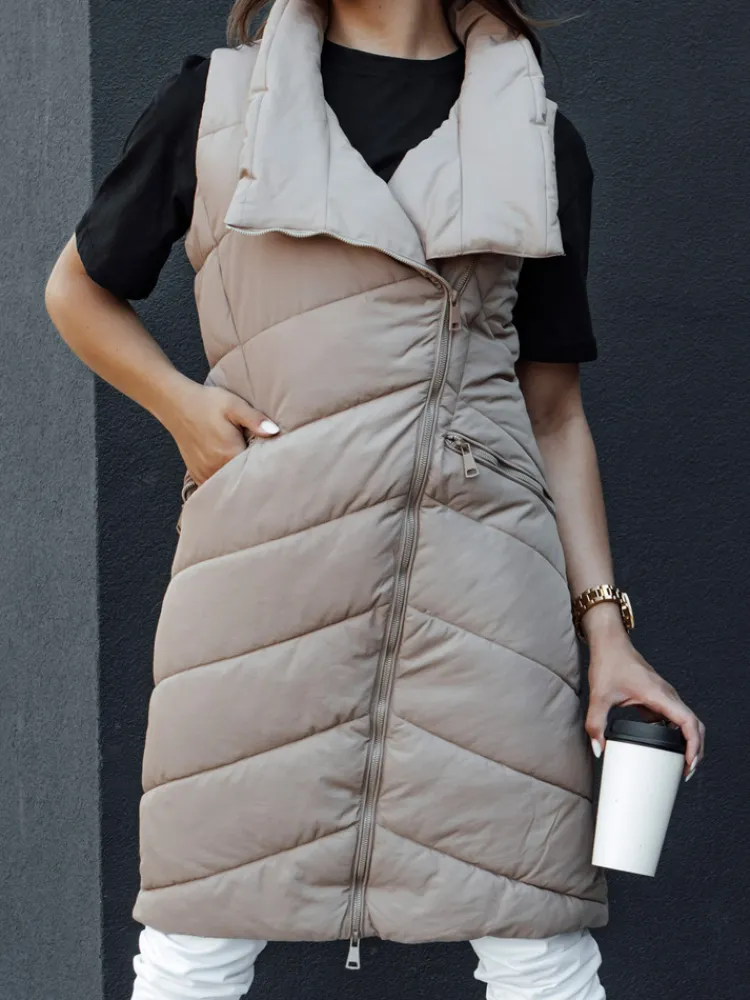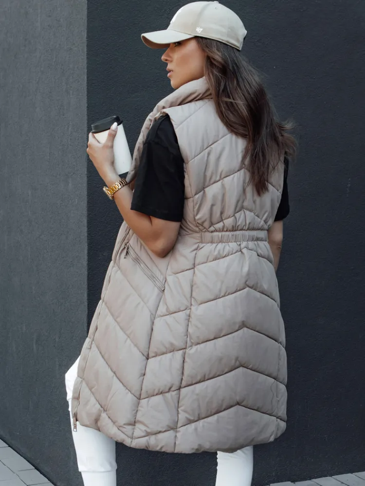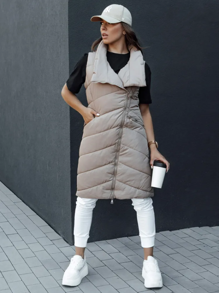 Ta stylowa kamizelka puchowa to idealne rozwiązanie na chłodniejsze dni. Dzięki nowoczesnemu krojowi i wysokiej jakości materiałom zapewnia nie tylko komfort termiczny, ale także świetnie prezentuje się w każdej stylizacji. Duże kieszenie i praktyczny zamek błyskawiczny podkreślają jej funkcjonalność. Idealna zarówno do miejskich, jak i casualowych looków. Kamizelka doskonale komponuje się z jeansami, legginsami czy sportowymi spodniami, tworząc modny, a zarazem wygodny outfit. Wybierz jakość i styl, które Cię wyróżnią!