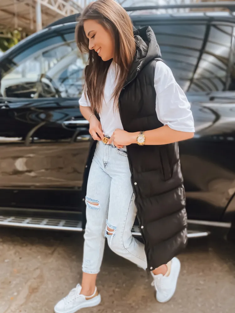 Pikowany materiał, zapięcie regulowane suwakiem oraz lekkie ocieplenie to jedne z wielu zalet tego modelu. Kamizelka posiada duży kaptur oraz kieszenie zapinane na napy. Z pewnością dopełni wiele Twoich stylizacji.