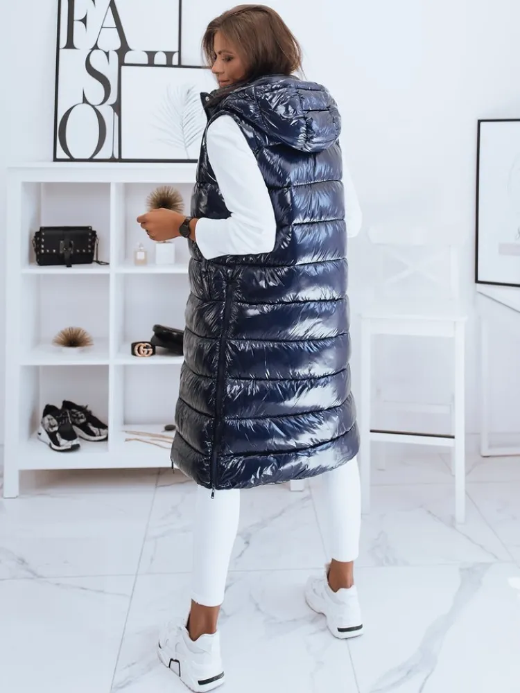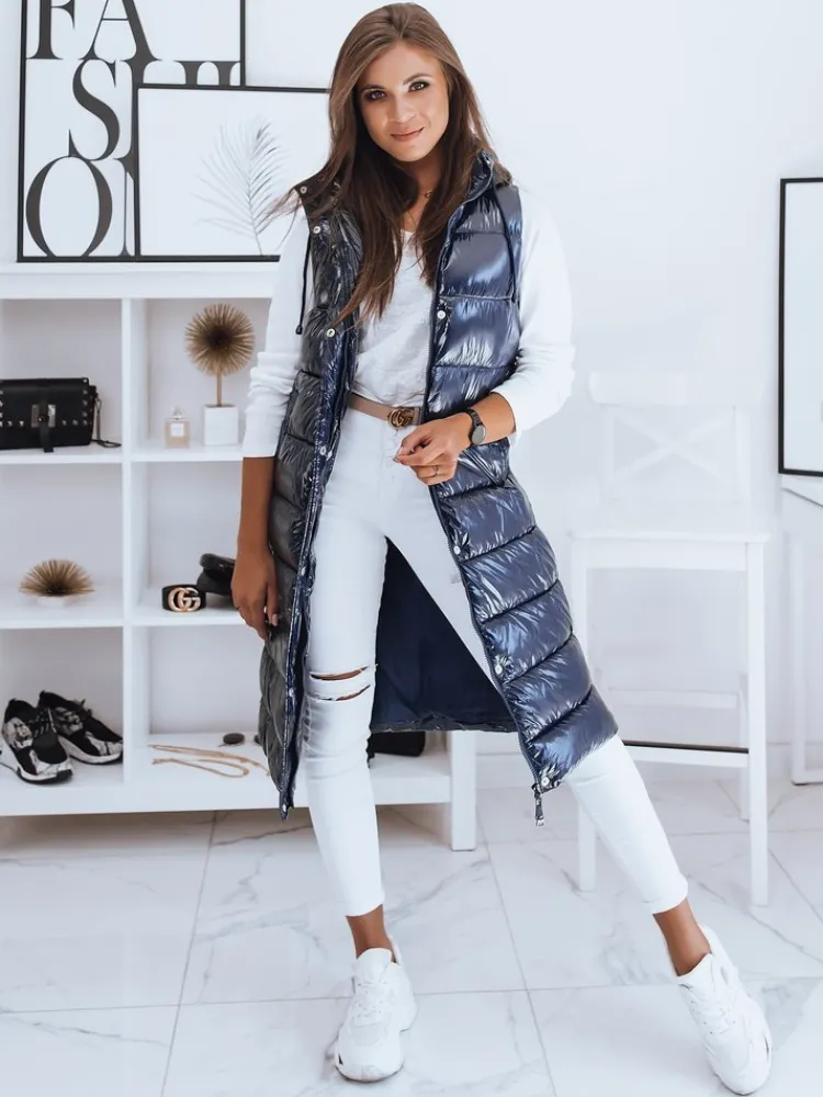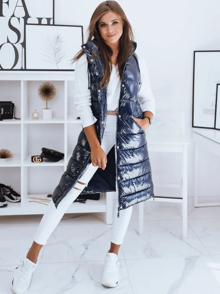 Pikowana kamizelka GANTINI wykonana została z bardzo dobrej jakości połyskującego materiału. Model posiada kieszenie oraz nieodpinany kaptur. Zapinana na suwak oraz napy. Po bokach znajdują się dodatkowe zamki, które można dowolnie regulować. Zdecydowanie będzie to świetny wybór na chłodne dni. Sprawi, że poczujesz się niezwykle stylowo i komfortowo! Must Have!