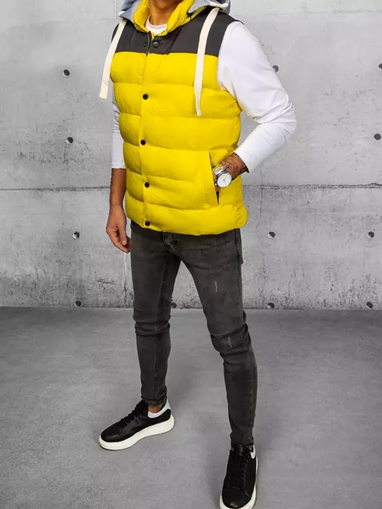 Kamizelki Męskie>Dstreet Kamizelka męska z kapturem żółta TX4321
