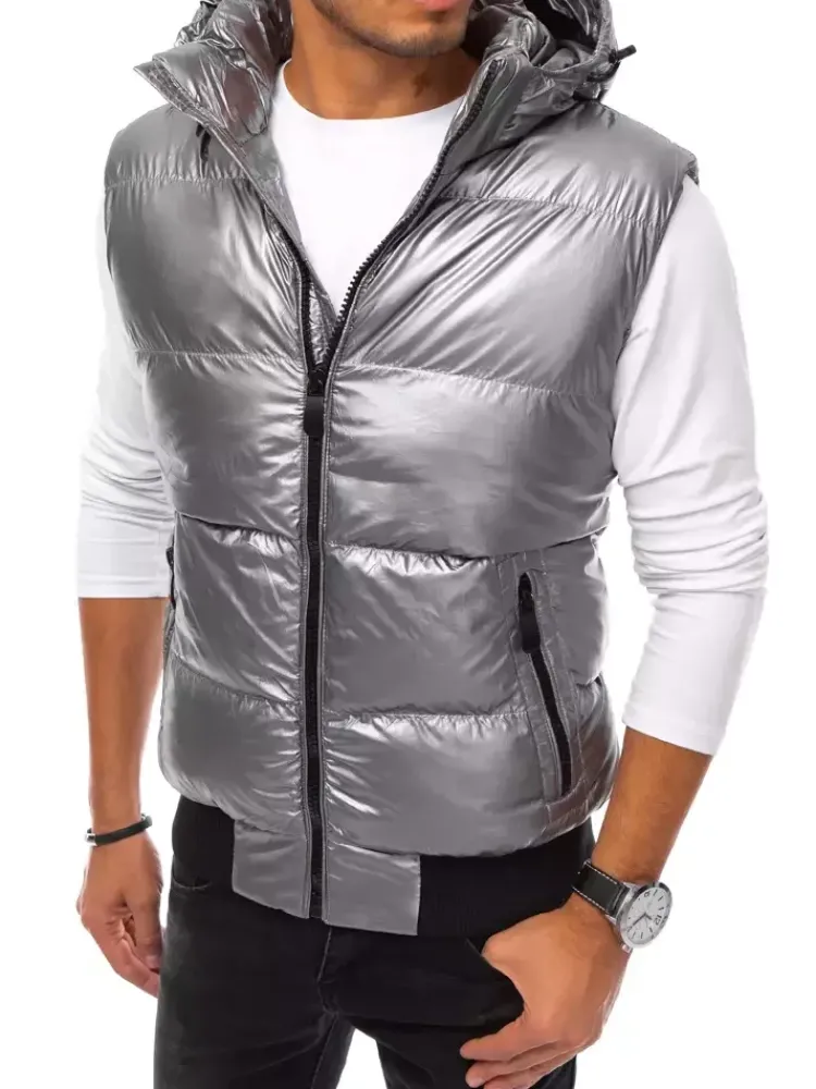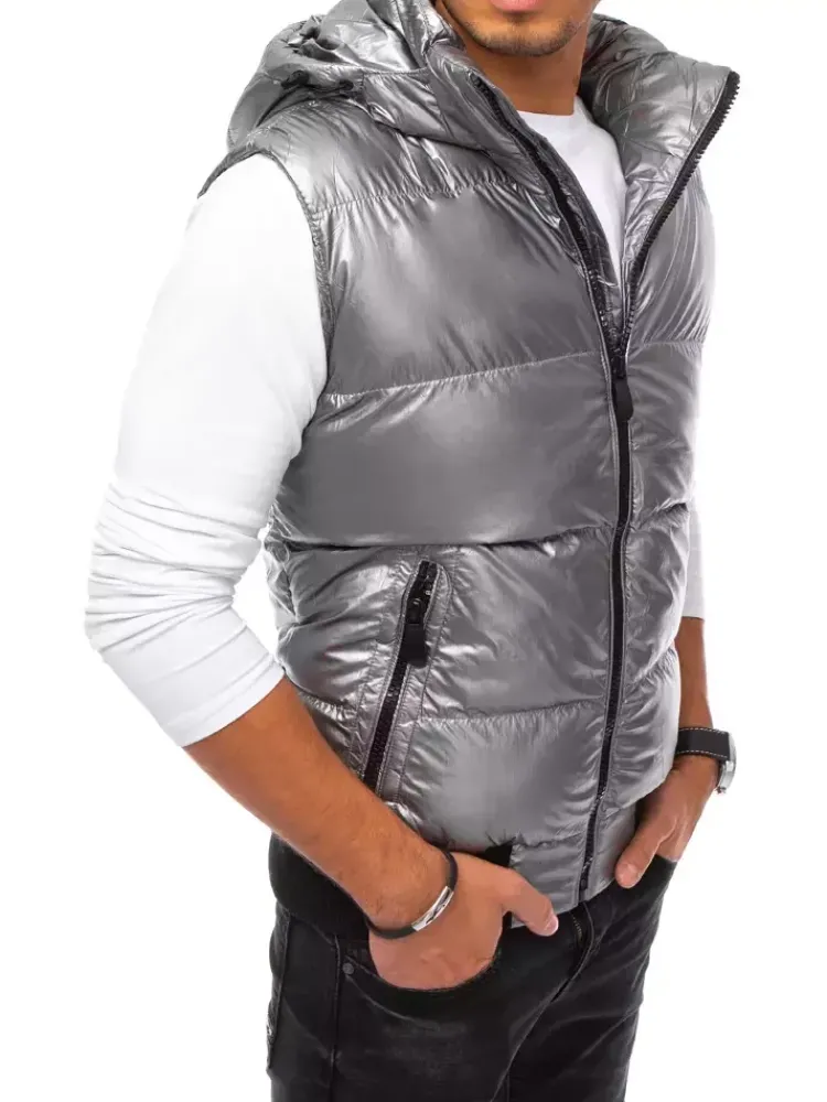 Kamizelki Męskie|Kurtki Męskie>Dstreet Kamizelka męska srebrna TX3923