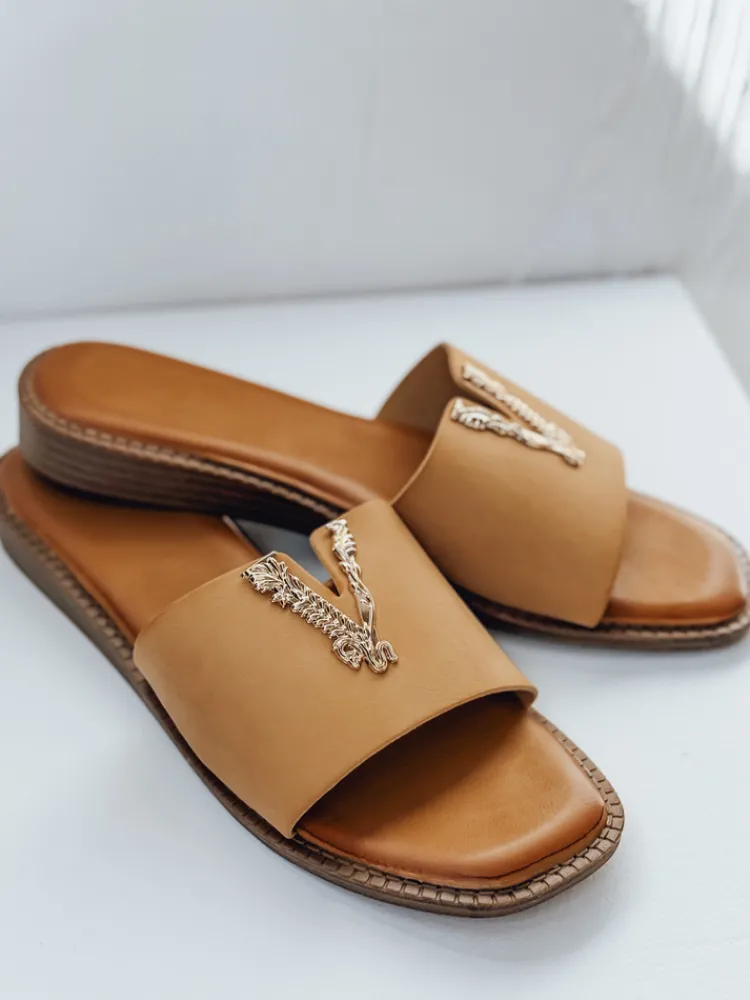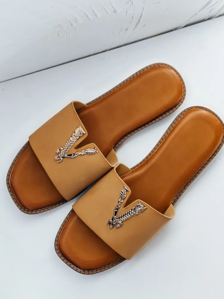 Stylowe klapki na płaskiej podeszwie to propozycja dla kobiet ceniących wygodę i elegancję. Dekoracyjny detal w formie litery V nadaje im unikalnego charakteru. Wykonane z miękkiej skóry ekologicznej, idealnie sprawdzą się na lato – zarówno do sukienek, jak i do szortów.