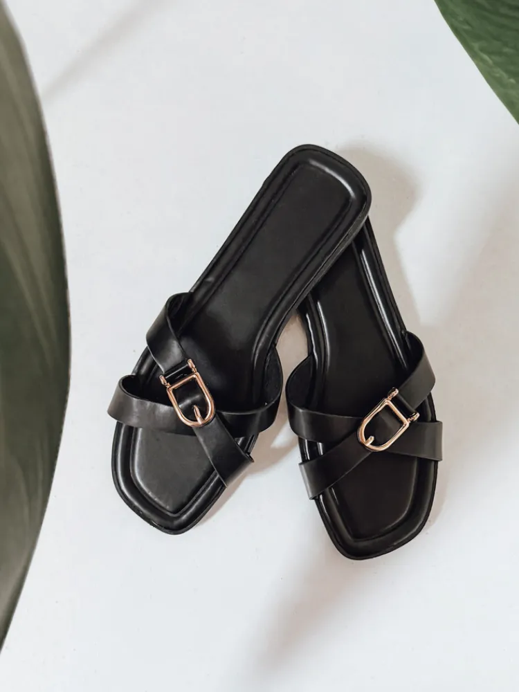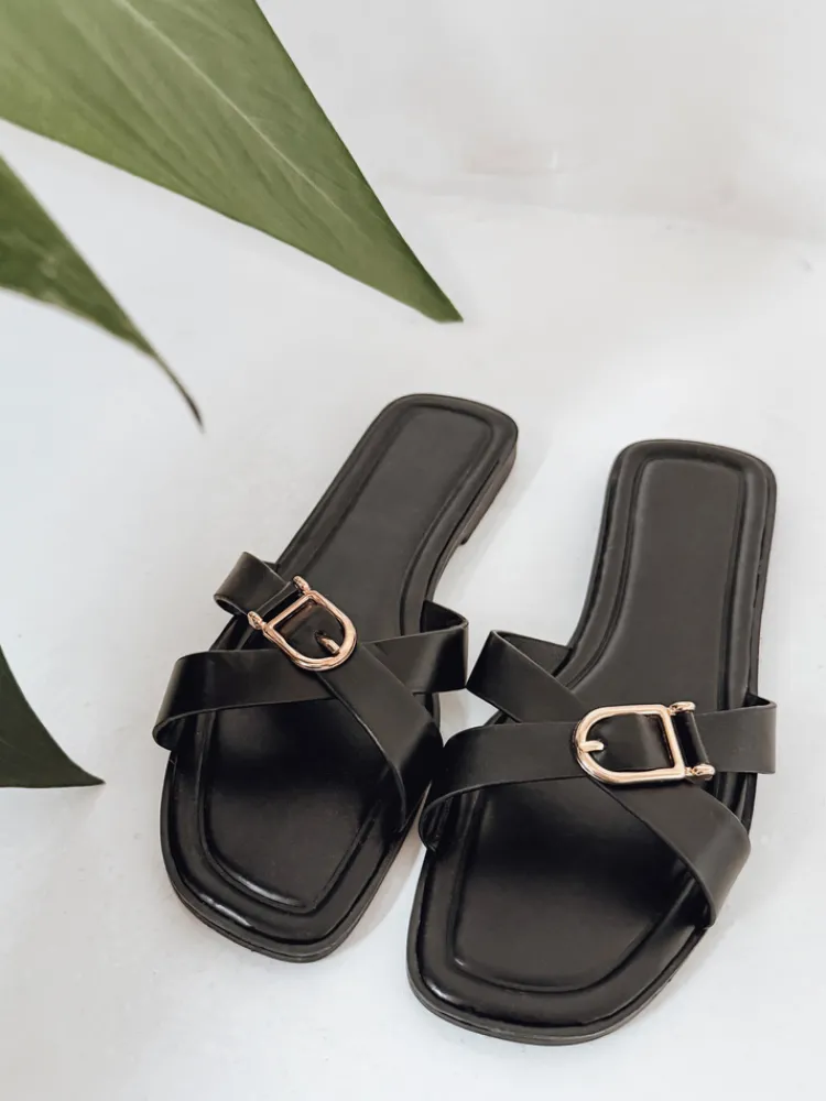 Klapki damskie wykonane z wysokiej jakości skóry ekologicznej, z dekoracyjną klamrą i krzyżującymi się paskami. Stylowy design i uniwersalny charakter sprawiają, że idealnie komponują się zarówno z sukienką, jak i jeansami. Lekkie, wygodne i modne – świetne na wiosenne dni.