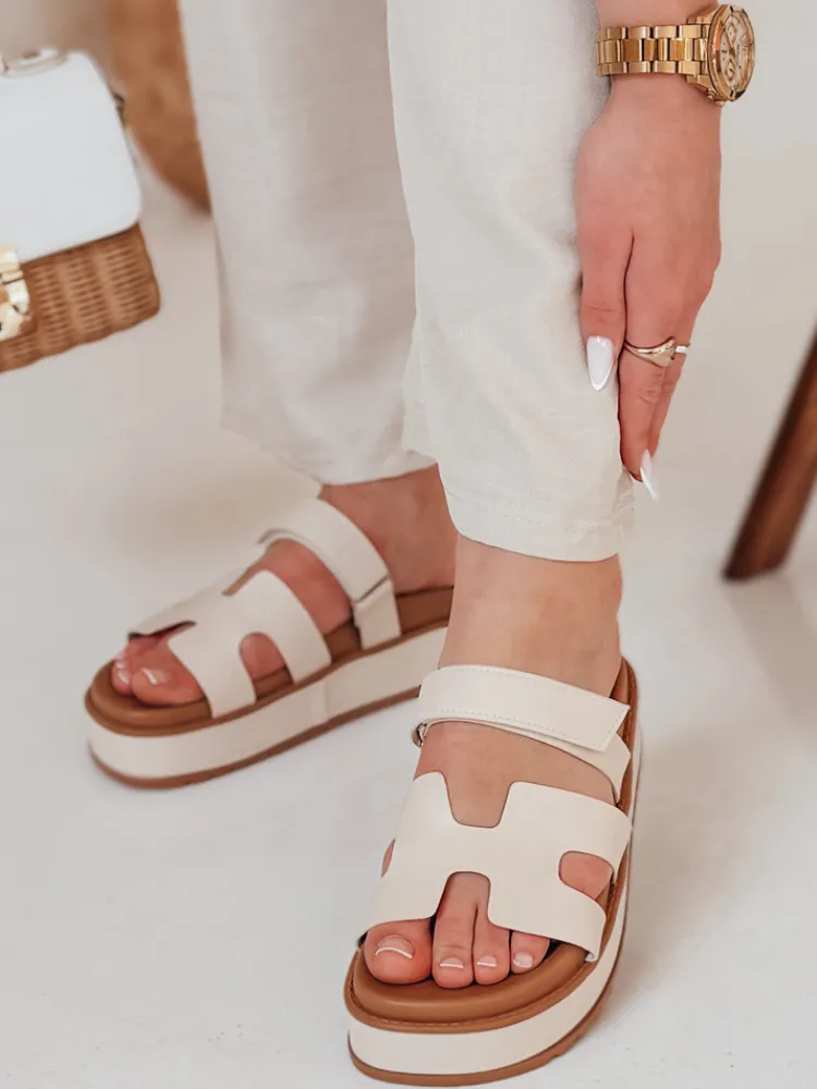 Stylowe klapki na podwyższonej podeszwie 5-centymetrowej to must-have na cieplejsze dni. Regulowane paski na rzepy gwarantują wygodę, a wysokiej jakości ekoskóra nadaje im elegancki wygląd oraz poblasku. Idealne do letnich sukienek, spodni czy plażowych stylizacji. Ich nowoczesny design sprawia, że świetnie komponują się z codziennym outfitem.
