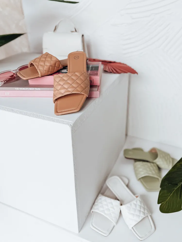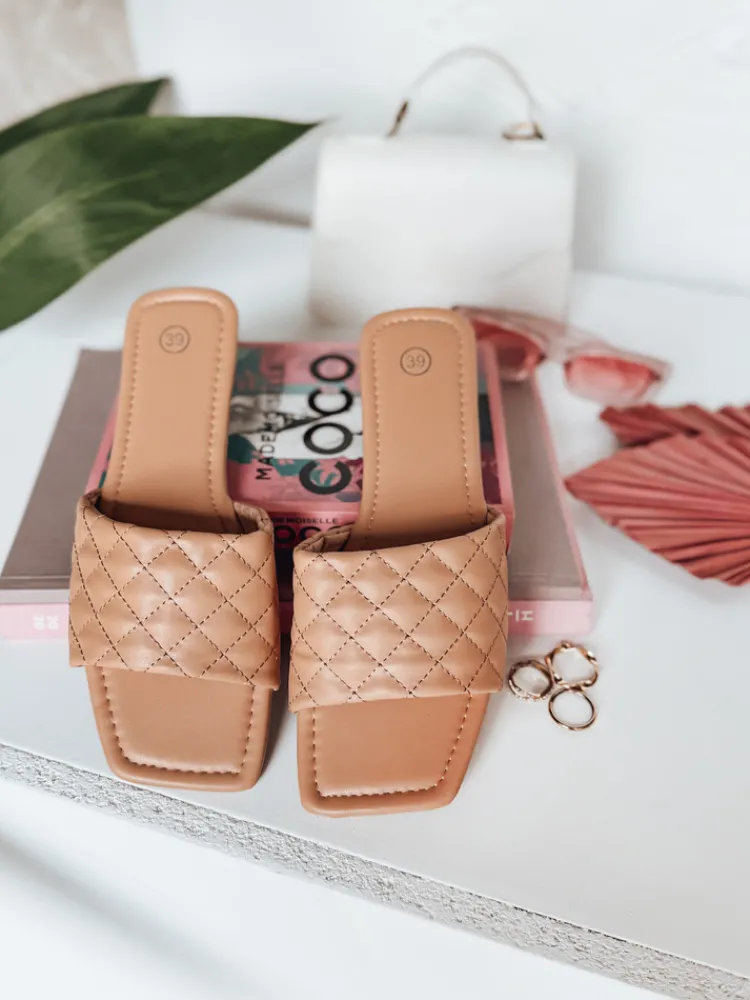 Damskie klapki z pikowanym szerokim paskiem i kwadratowym noskiem to połączenie wygody i najnowszych trendów. Miękka wkładka i stabilna podeszwa zapewniają komfort podczas letnich spacerów i miejskich stylizacji. Idealne na lato – zarówno do zwiewnej sukienki, jak i szortów. Model stworzony z myślą o modnym wypoczynku.