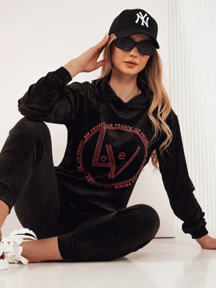 Welurowy komplet to hit nadchodzącego sezonu! Bluza z kontrastowym ale jednocześnie minimalistycznym nadrukiem, tworzy stylową całość z dopasowanymi spodniami. Wykonany został z niezwykle miłego w dotyku materiału. Komplet dostępny w kilku wersjach kolorystycznych.