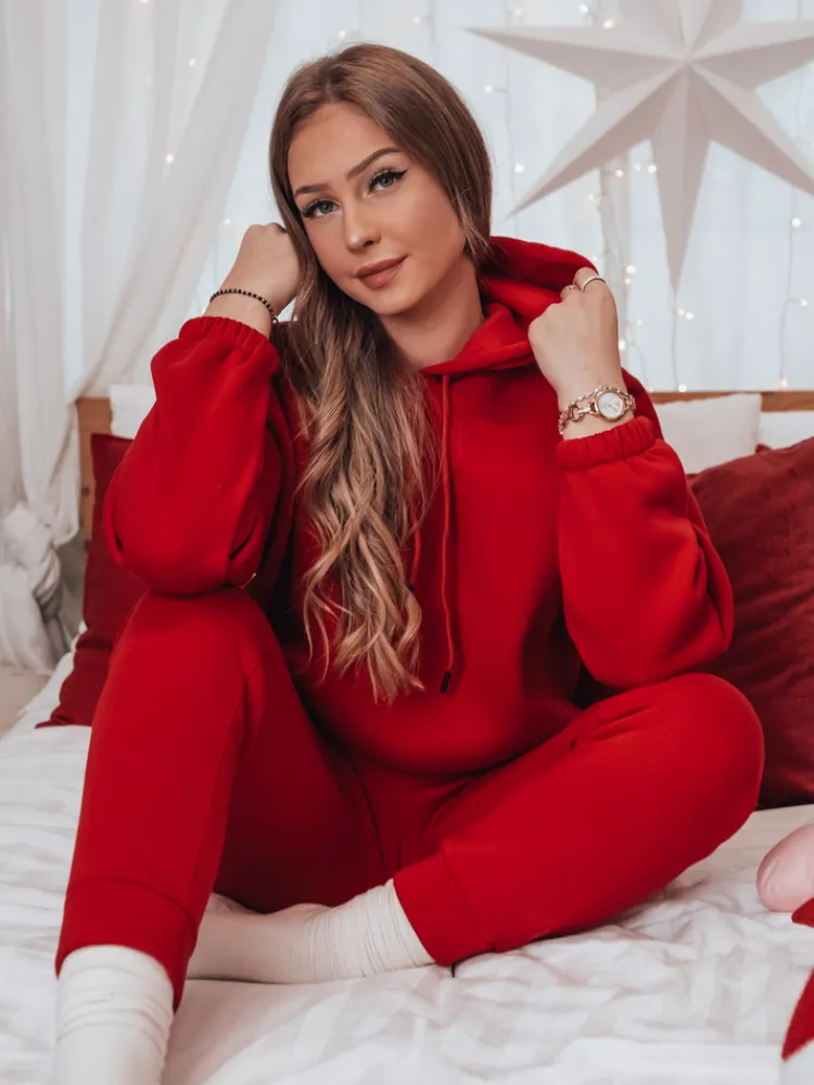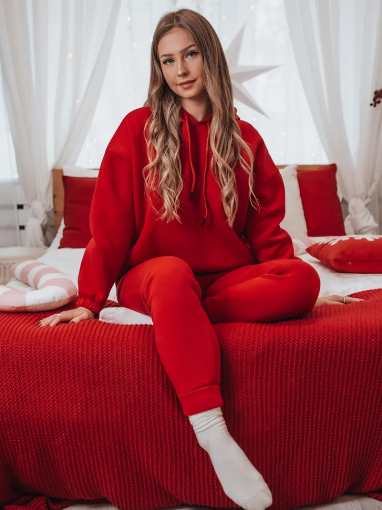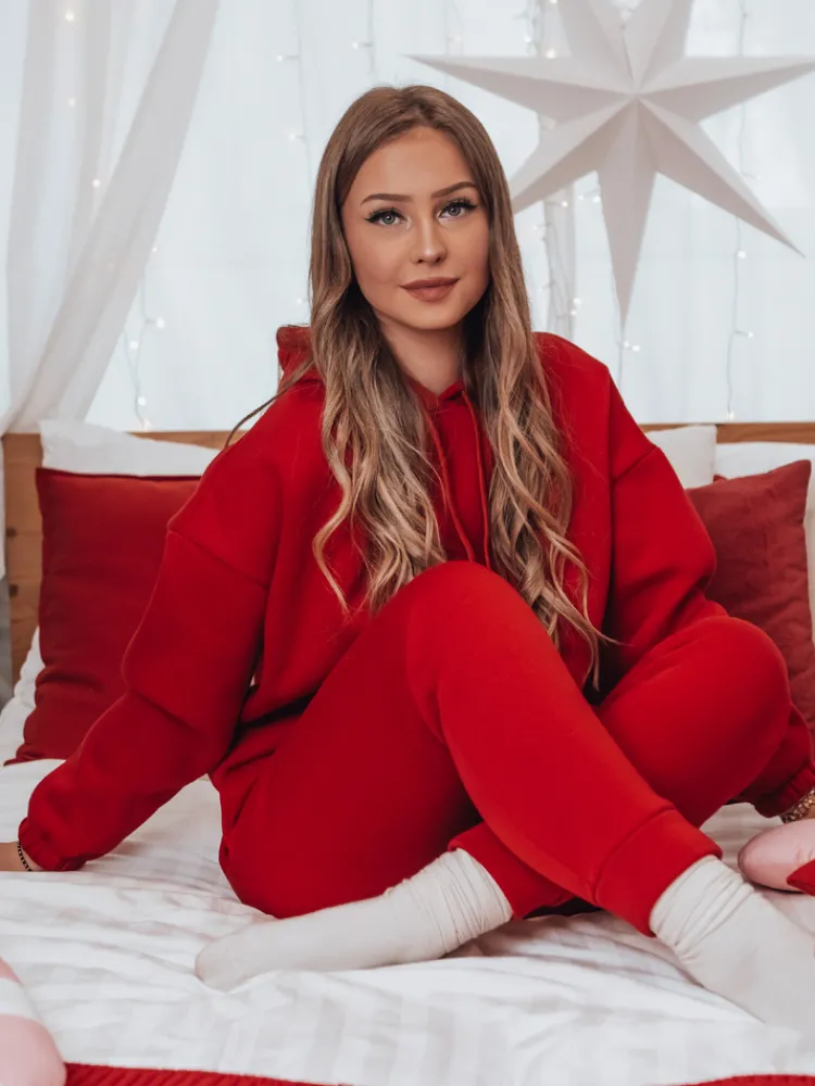 Wygodny damski dres, idealny na chłodniejsze dni. Bluza z kapturem i elastyczne spodnie gwarantują komfort i swobodę ruchów. Idealny na relaks w domu lub codzienne stylizacje, dodając energii i nowoczesnego stylu. Miękka, oddychająca tkanina otuli Cię ciepłem, zapewniając wygodę przez cały dzień.