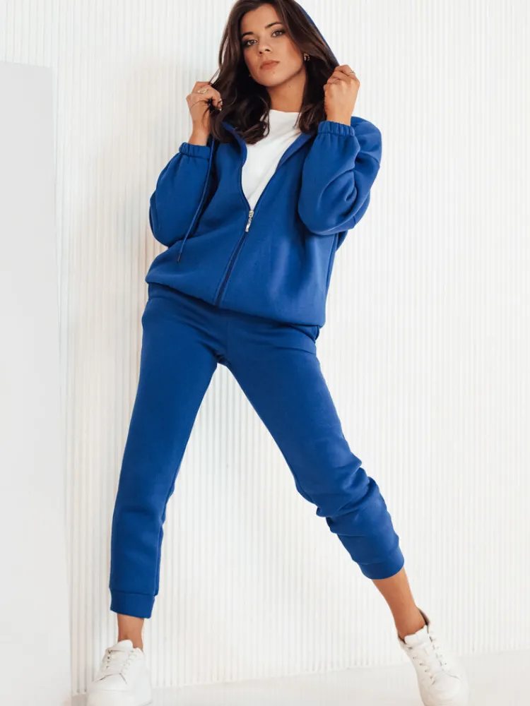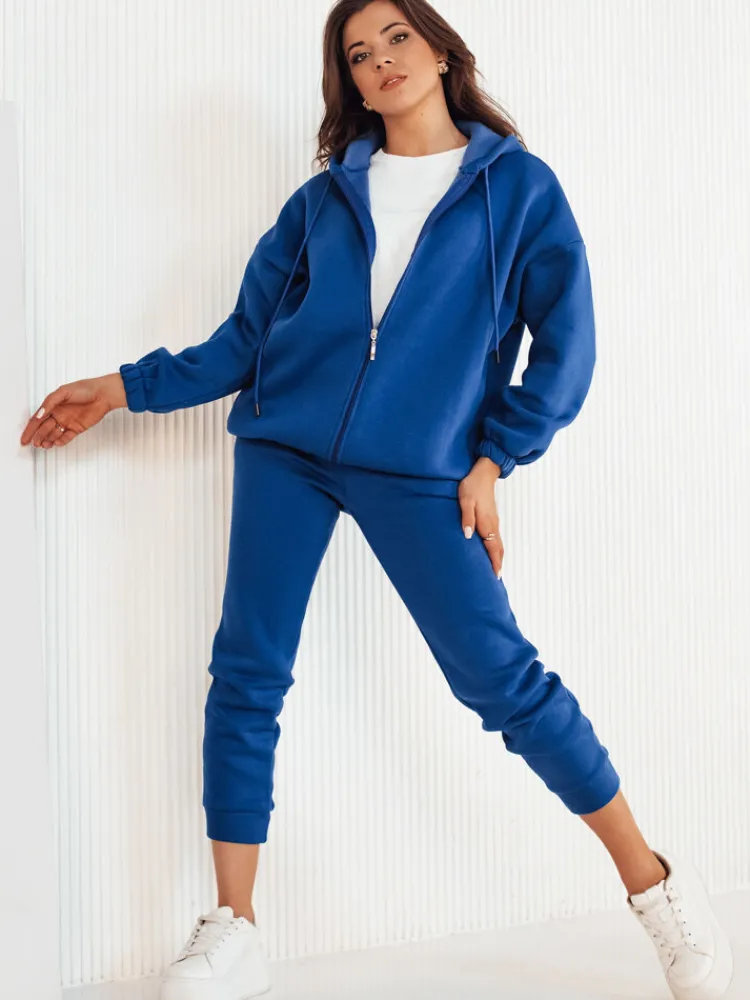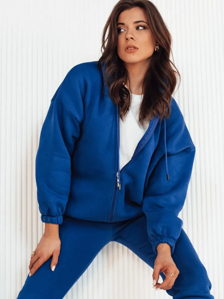 Ocieplany, basicowy komplet dresowy to must-have w każdej szafie. Uniwersalny i ponadczasowy zestaw sprawdzi się w sportowych i codziennych stylizacjach. Bluza z dużym kapturem zapinana na zamek. Spodnie posiadają wiązanie w pasie oraz ściągacze przy nogawkach. Świetny set na jogging, siłownie, czy też spacer.