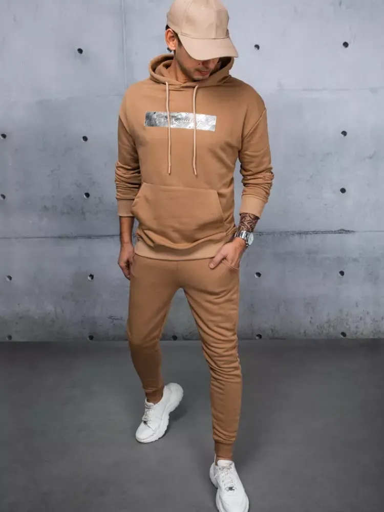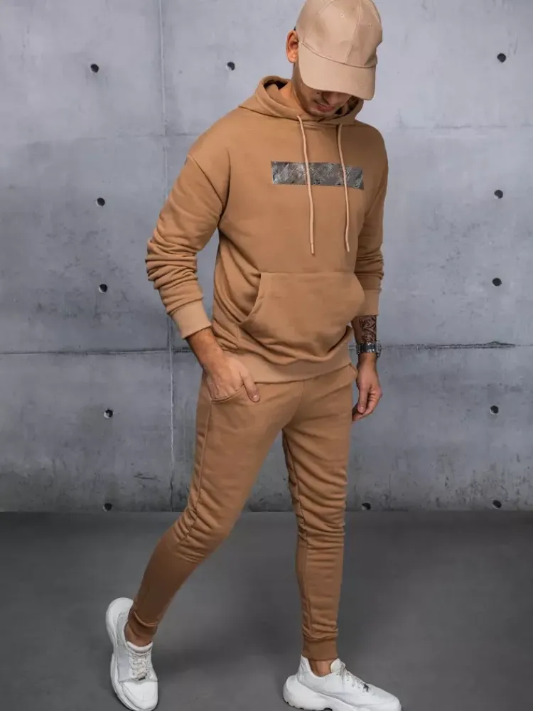 Komplety Dresowe Męskie>Dstreet Dres męski kamelowy AX0696